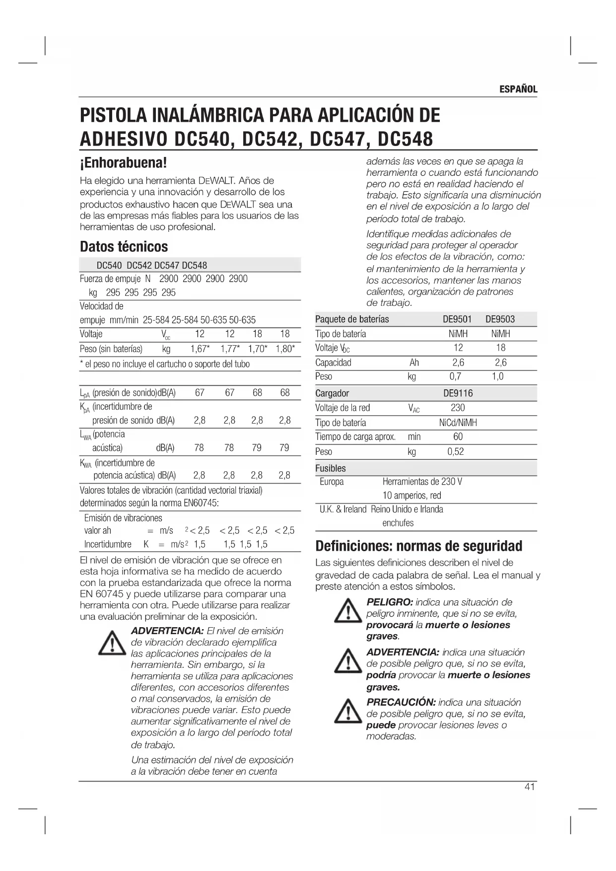 Descarga las instrucciones para tu Pistola de pegamento en formato PDF gratis! Encuentra tus instrucciones DC548 - DEWALT y toma tu dispositivo electrónico nuevamente en la mano. En esta página están publicados todos los documentos necesarios para el uso de su dispositivo. DC548 de la marca DEWALT.