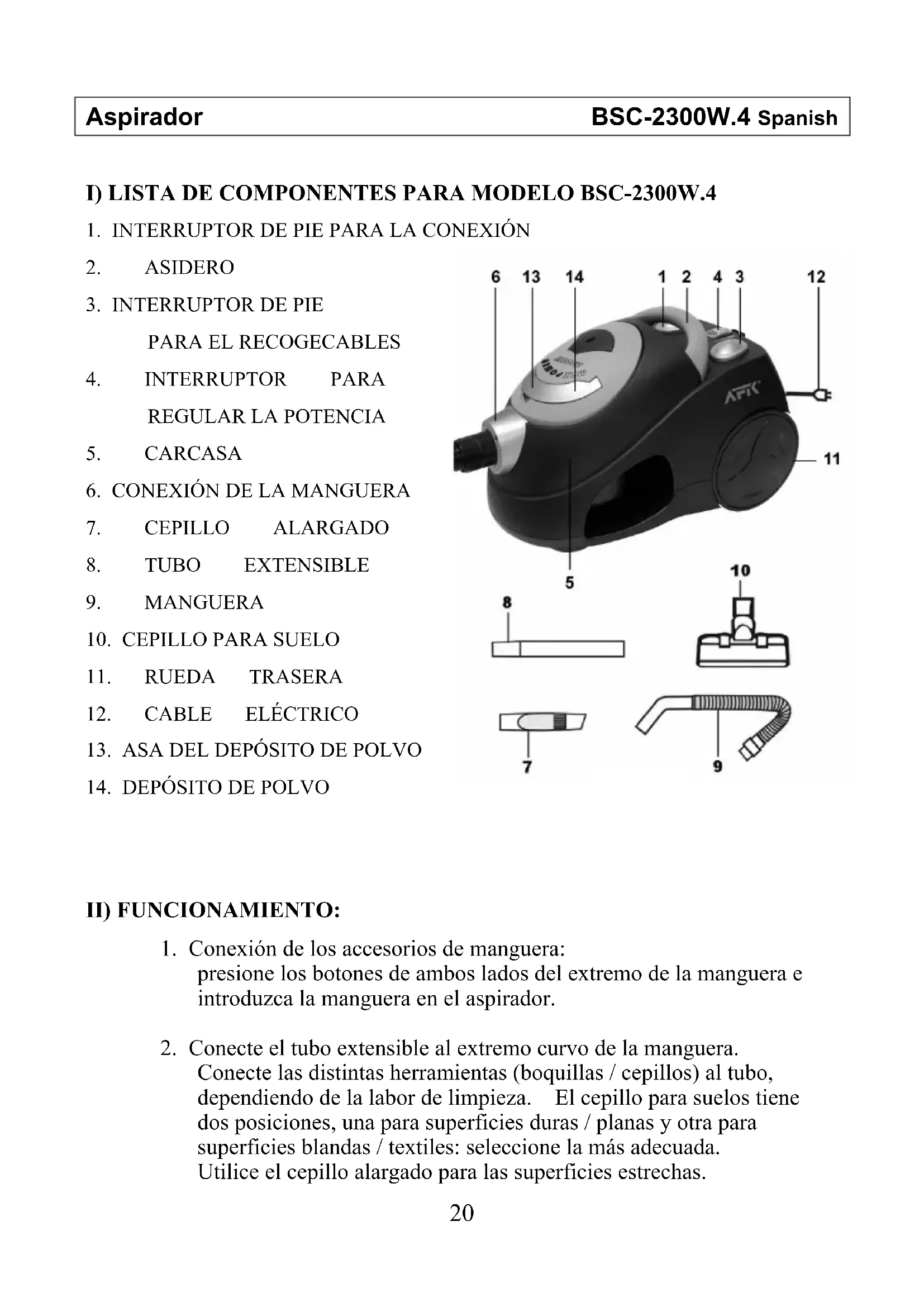 BSC2300W.4 - Aspiradora AFK - Manual de uso y guía de instrucciones gratis