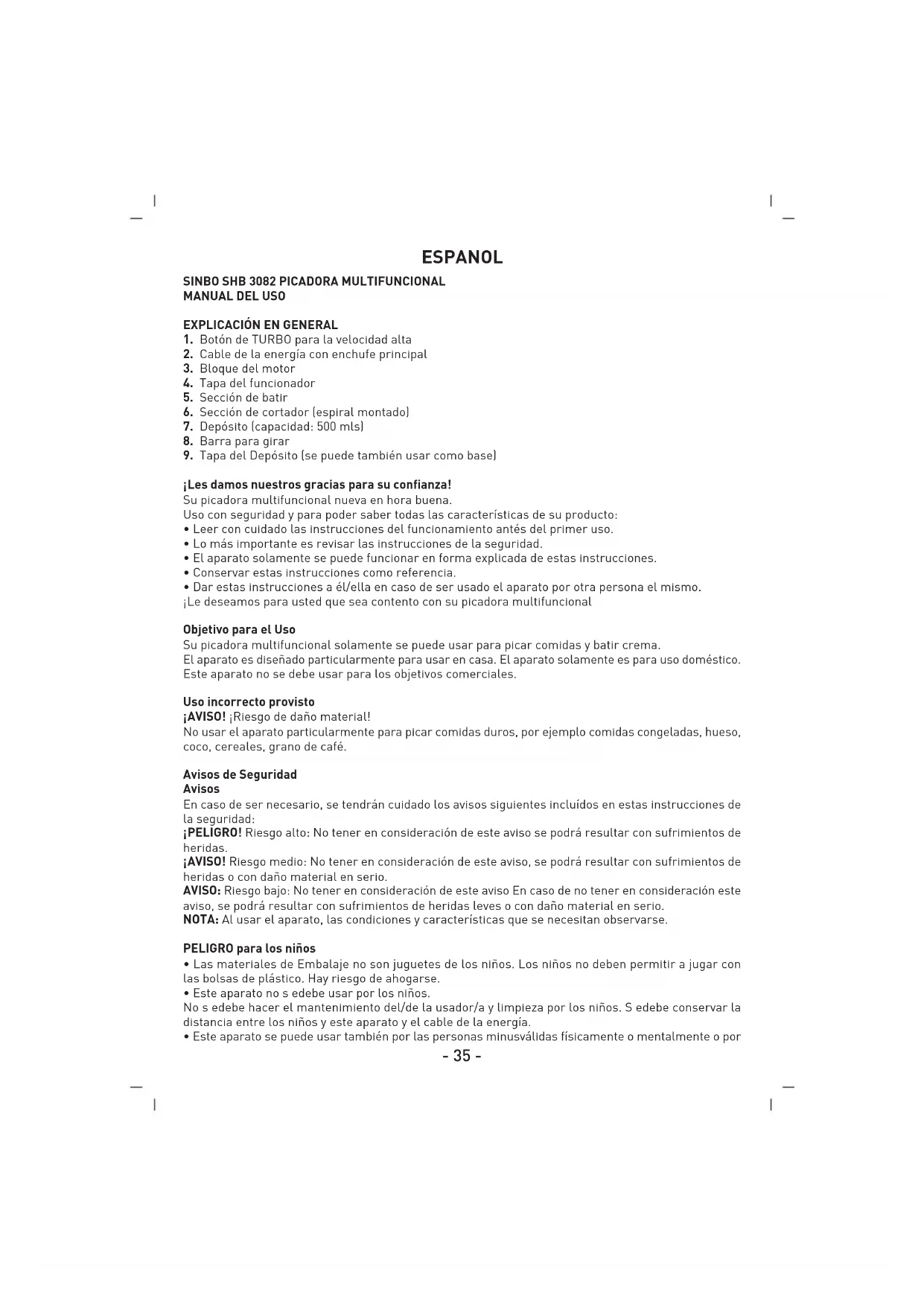 SHB 3082 - Procesador de alimentos SINBO - Manual de uso y guía de instrucciones gratis