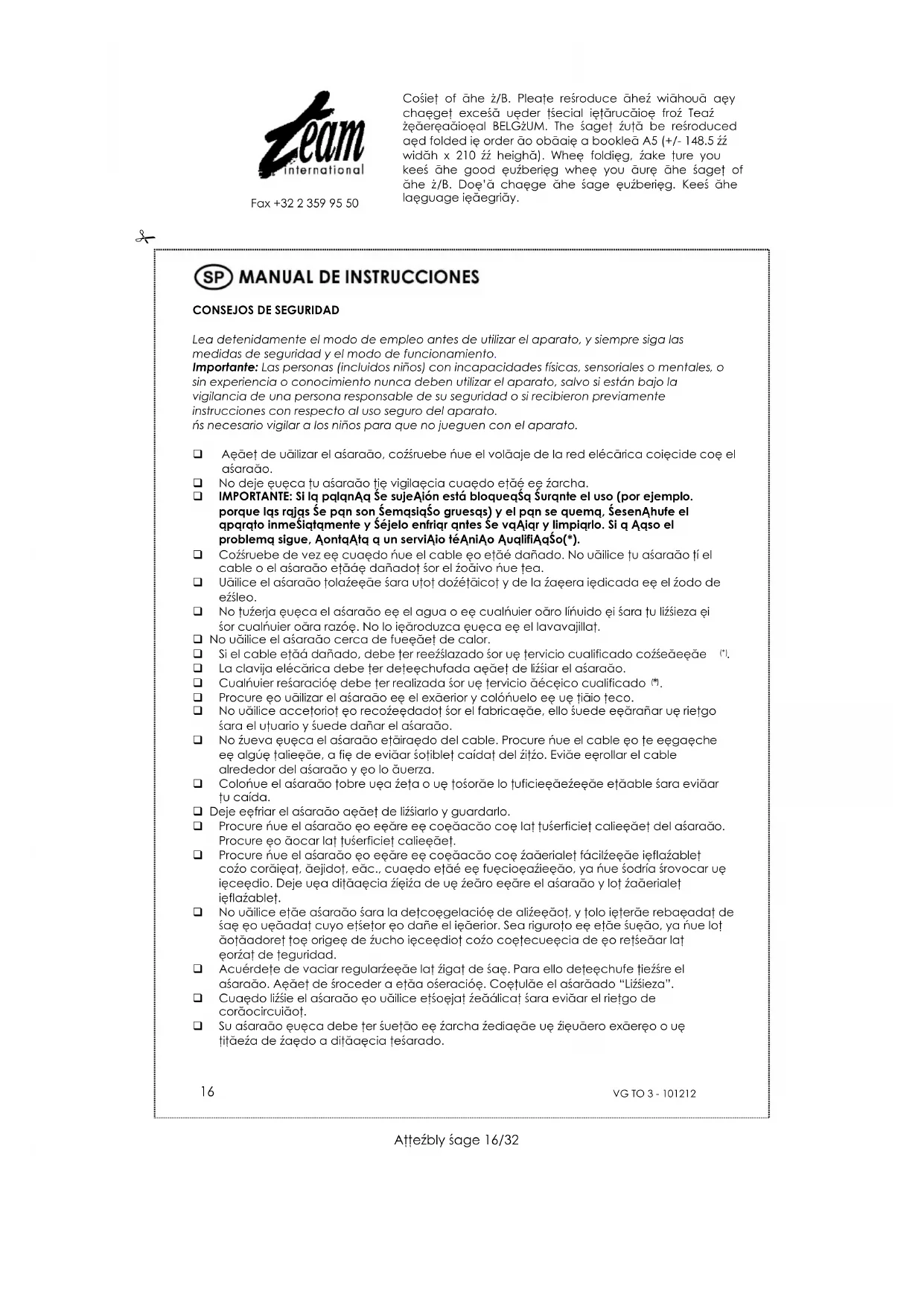 Aeaet de uilizar el asaraao, cozruebe nue el volaje de la red elecaria coicide coe el asaraao.