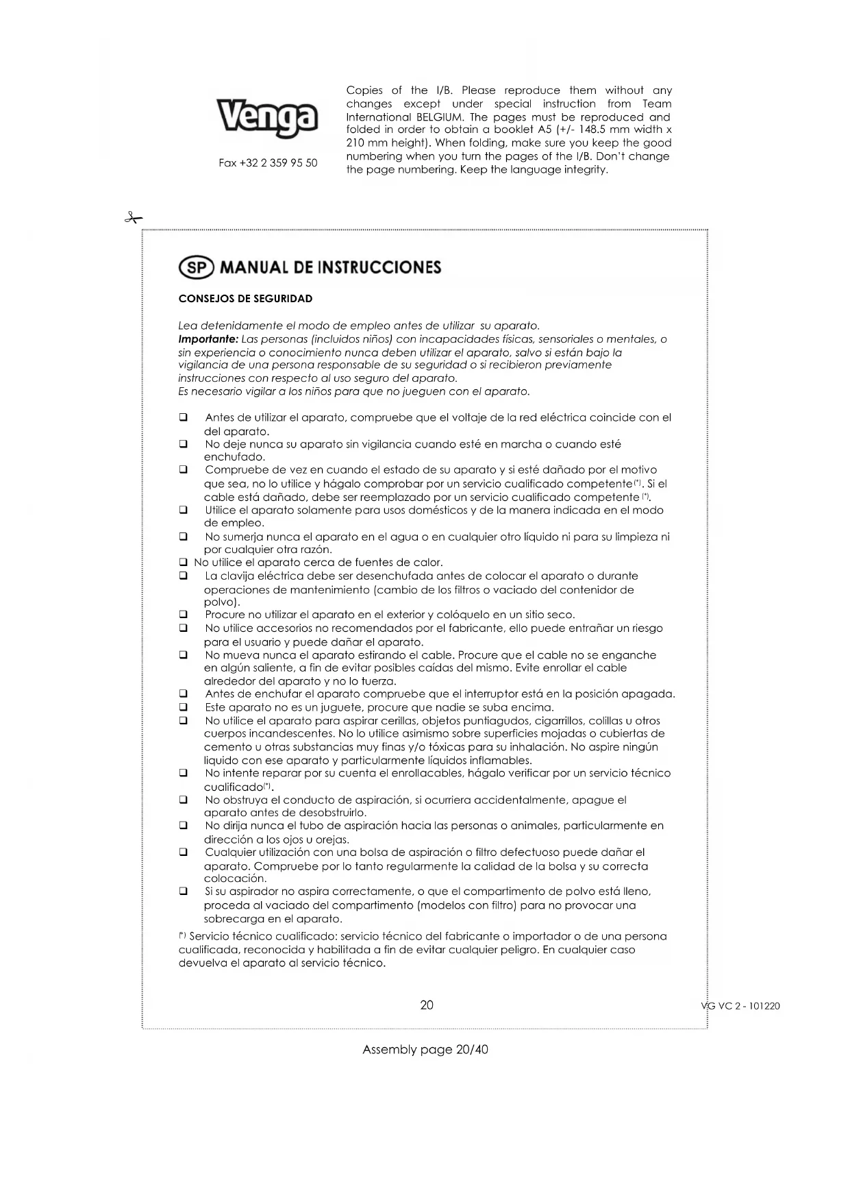 Encuentra gratis el manual del aparato VG VC 2 Venga en formato PDF.