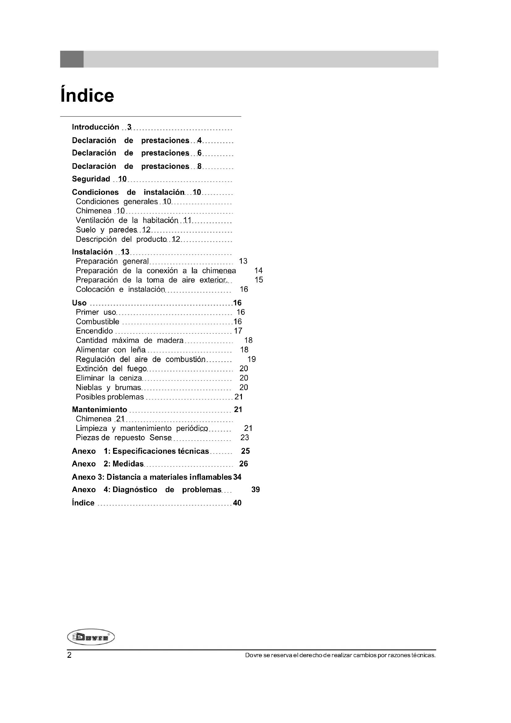 En este manual podrá leer cómo instalar, utilizar y mantener su aparato de calefacción DOVRE de manera segura. Si desea obtener más información o datos técnicos adicionales, o si tiene problemas con la instalación, póngase en contacto con su distribuidor.