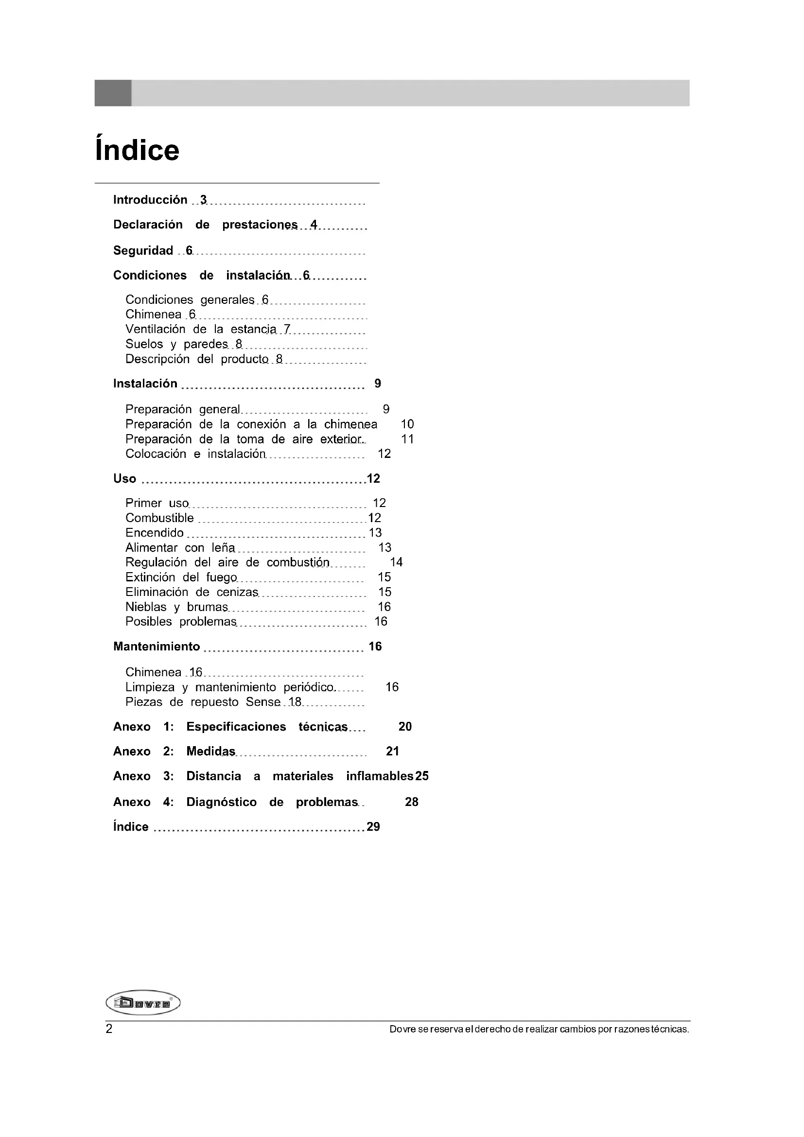 En este manual podra leer como instalar, utilizar y mantener su aparato de calefaction DOVRE de manera segura. Si desea Obtener mas informacion o datos技术和aderencias, o si Tiene problemas con la instalacion,pongase en contacto con su distribuidor.