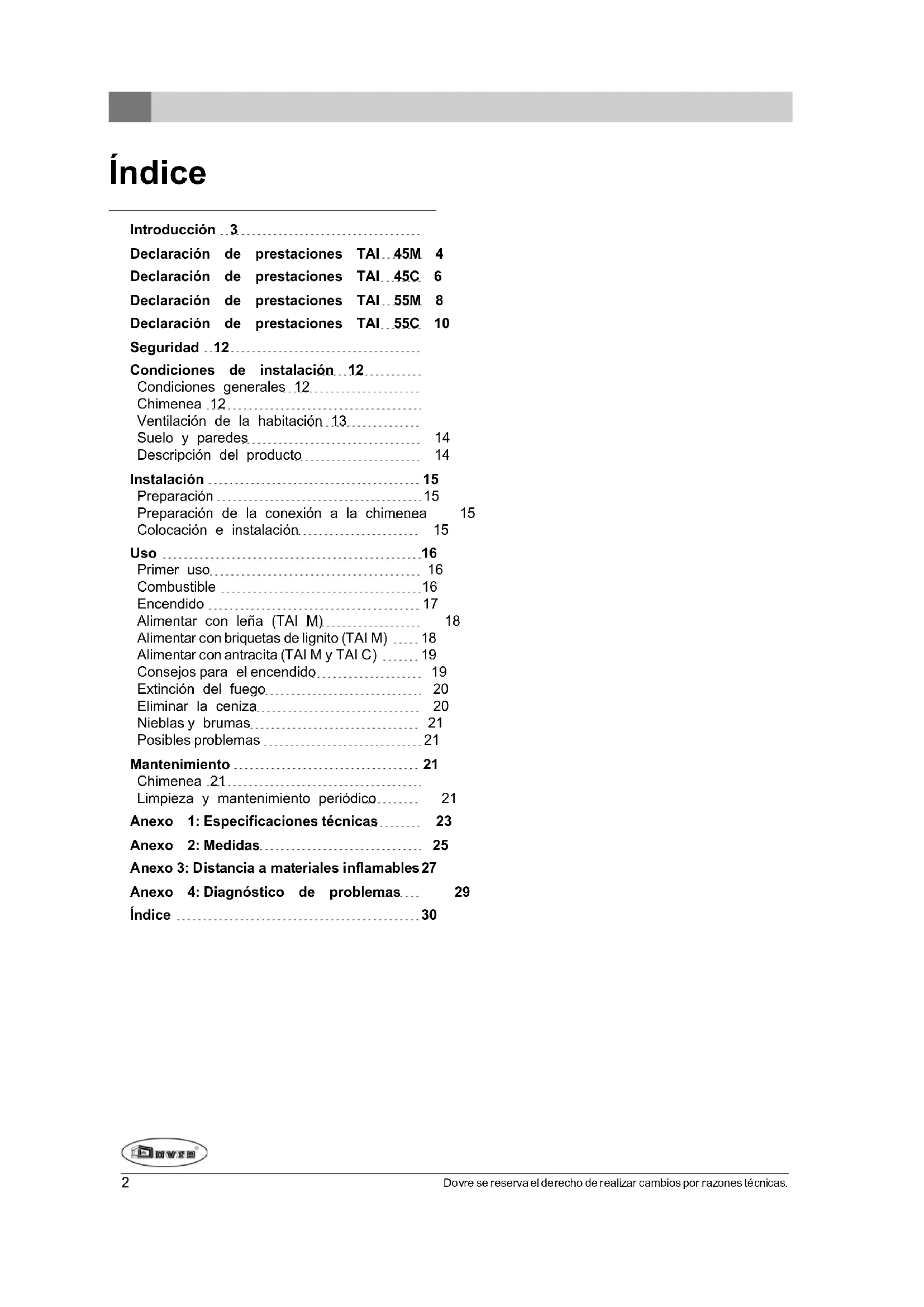 TAI 45C - Calefacción DOVRE - Manual de uso y guía de instrucciones gratis