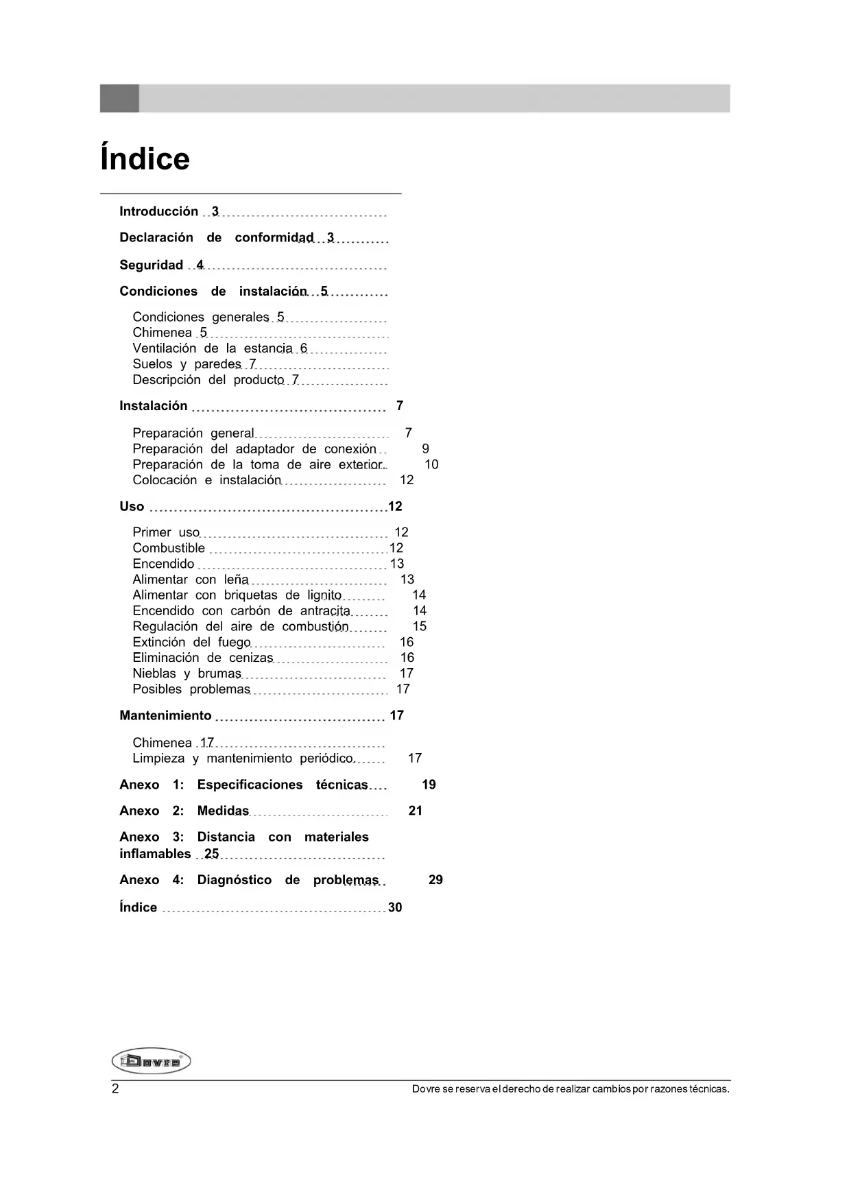 En este manual podrá leer cómo instalar, utilizar y mantener su aparato de calefacción DOVRE de manera segura. Si desea obtener más información o datos técnicos adicionales, o si tiene problemas con la instalación, póngase en contacto con su distribuidor.