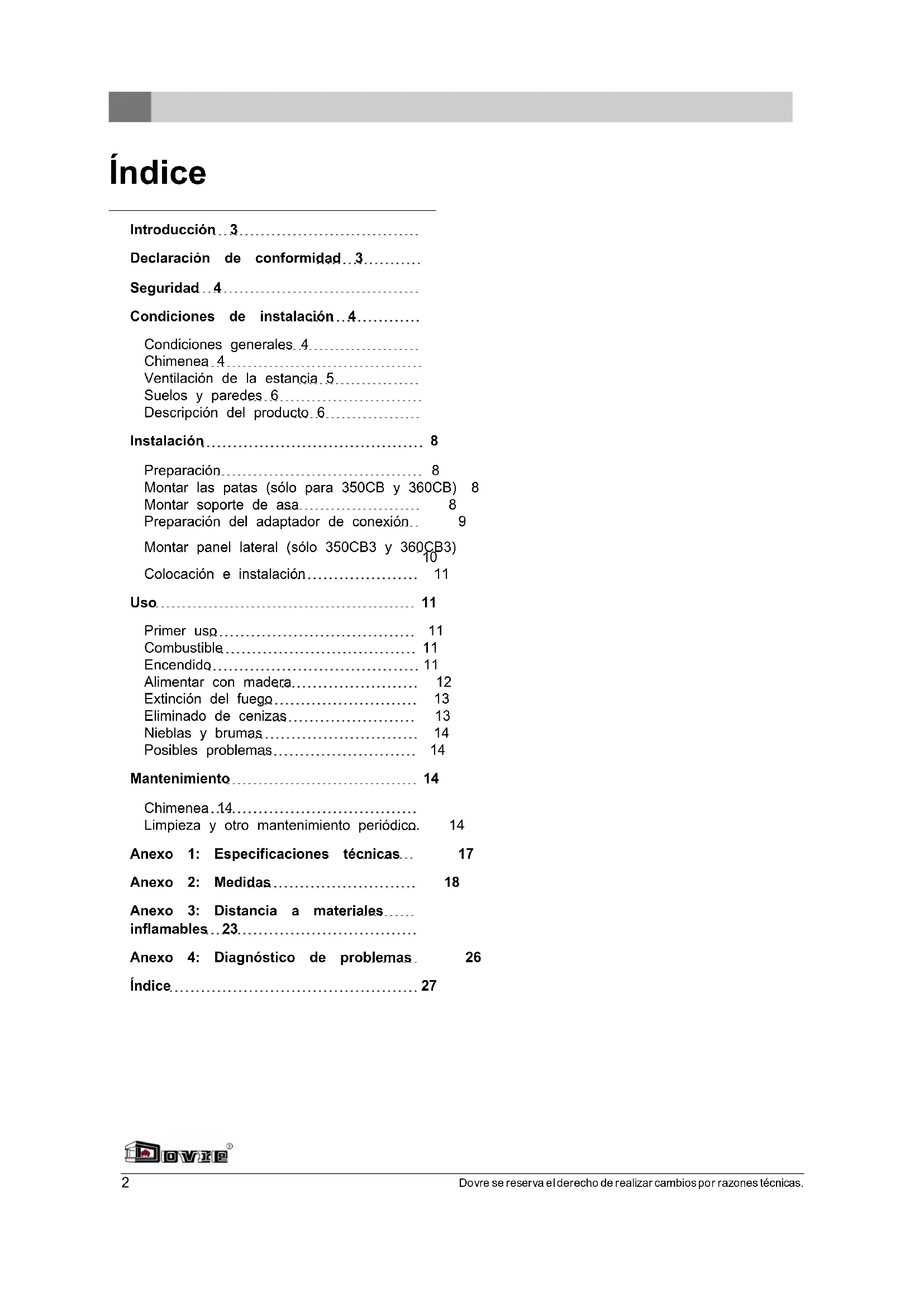 En este manual podra leer como instalar, utilizar y mantener su aparato de calefacción DOVRE de manera segura. Si desea Obtener mas informacion o datos技术和aderencias, o si Tiene problemas con la instalacion,pongase en contacto con su distribuidor.