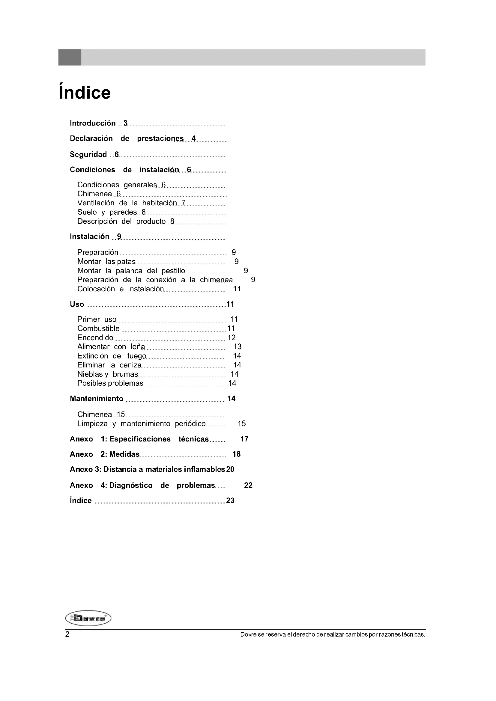 En este manual podrá leer cómo instalar, utilizar y mantener su aparato de calefacción DOVRE de manera segura. Si desea obtener más información o datos técnicos adicionales, o si tiene problemas con la instalación, póngase en contacto con su distribuidor.