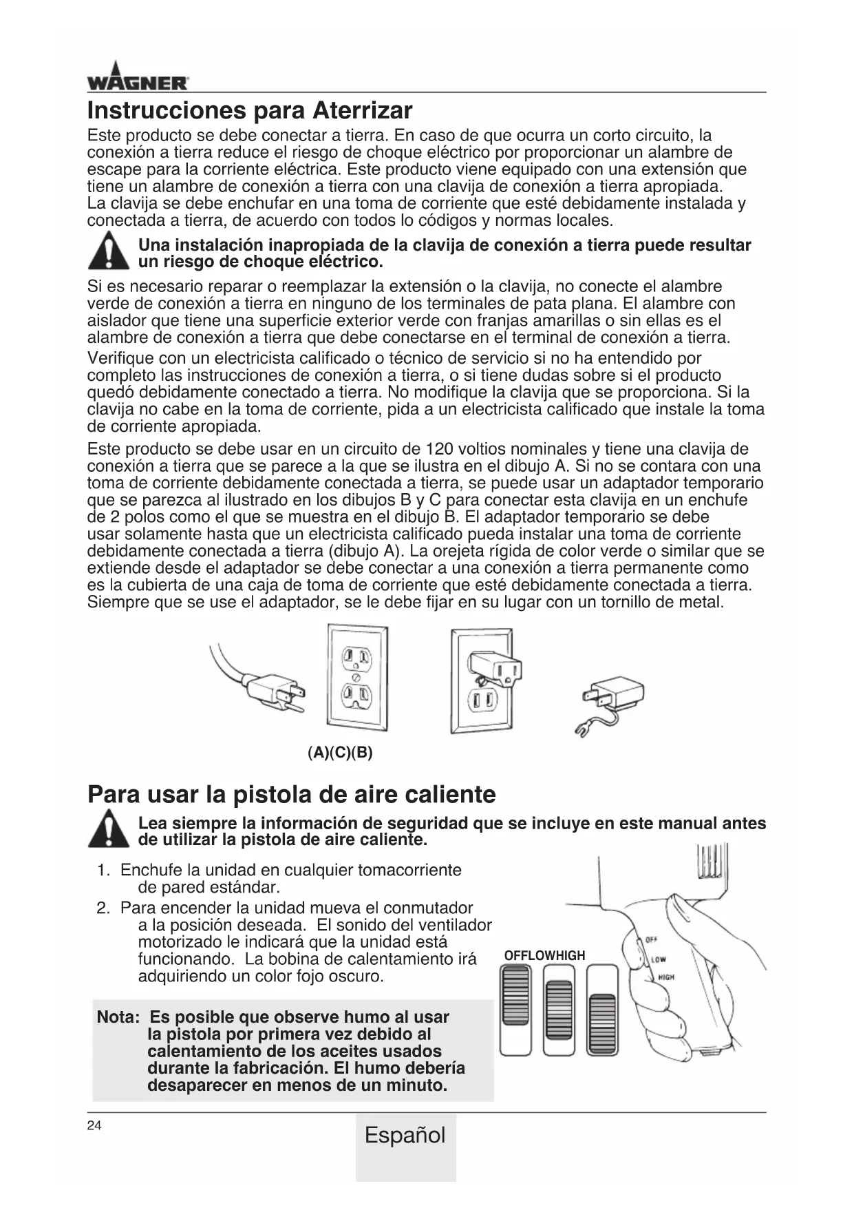 Este producto, fabricado por Wagner Spray Tech Corporation (Wagner), está garantizado contra defectos de materiales y mano de obra durante 2 años, contados a partir de la fecha de compra, siempre que el producto se opere de acuerdo a las recomendaciones e instrucciones impresas por Wagner. Esta garantía no cubre ningún defecto o daño que resulte de usos indebidos, accidentes, negligencia del usuario o desgaste normal. Esta garantía no cubre ningún defecto o daño ocasionado por mantenimiento o reparación efectuado por cualquiera persona o entidad que no sea un centro de servicios autorizados de Wagner.