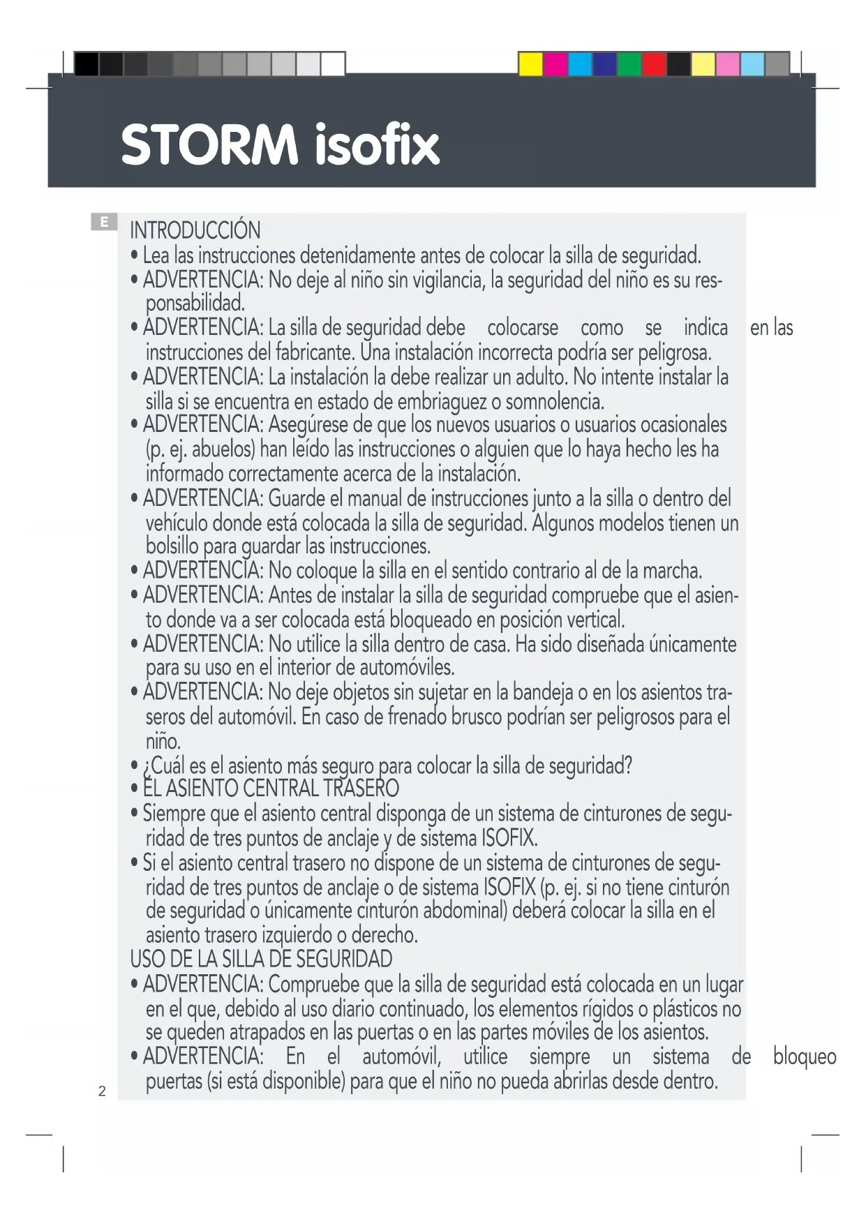 MANUAL DE USUARIO Storm Isofix Be Cool
