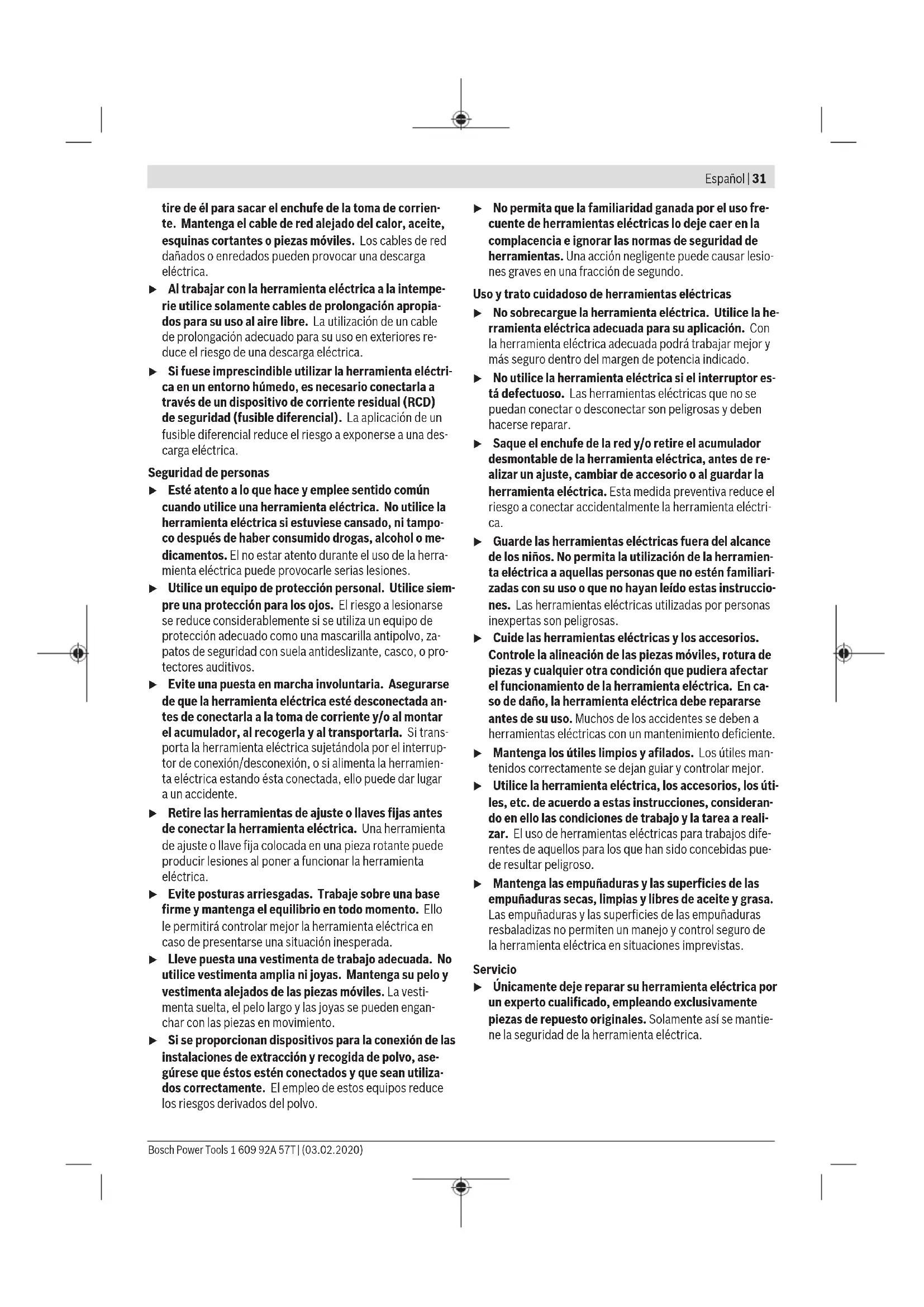 Recorrido de la bandeja mm 60 60 Peso según EPTA‑Procedure01:2014 kg 3,6 3,7 Clase de protección / II / II Las indicaciones son válidas para una tensión nominal [U] de 230 V. Estas indicaciones pueden variar con tensiones divergentes y en ejecucio- nes específicas del país. Bosch Power Tools 1 609 92A 57T | (03.02.2020)34 | Español Información sobre ruidos y vibraciones Valores de emisión de ruido determinados según EN62841-2-17. El nivel de ruidos valorado con A de la herramienta eléctrica asciende típicamente a: 93dB(A); nivel de potencia acústica 104dB(A). Inseguridad K = 3 dB. ¡Llevar una protección auditiva! Valores totales de vibración a