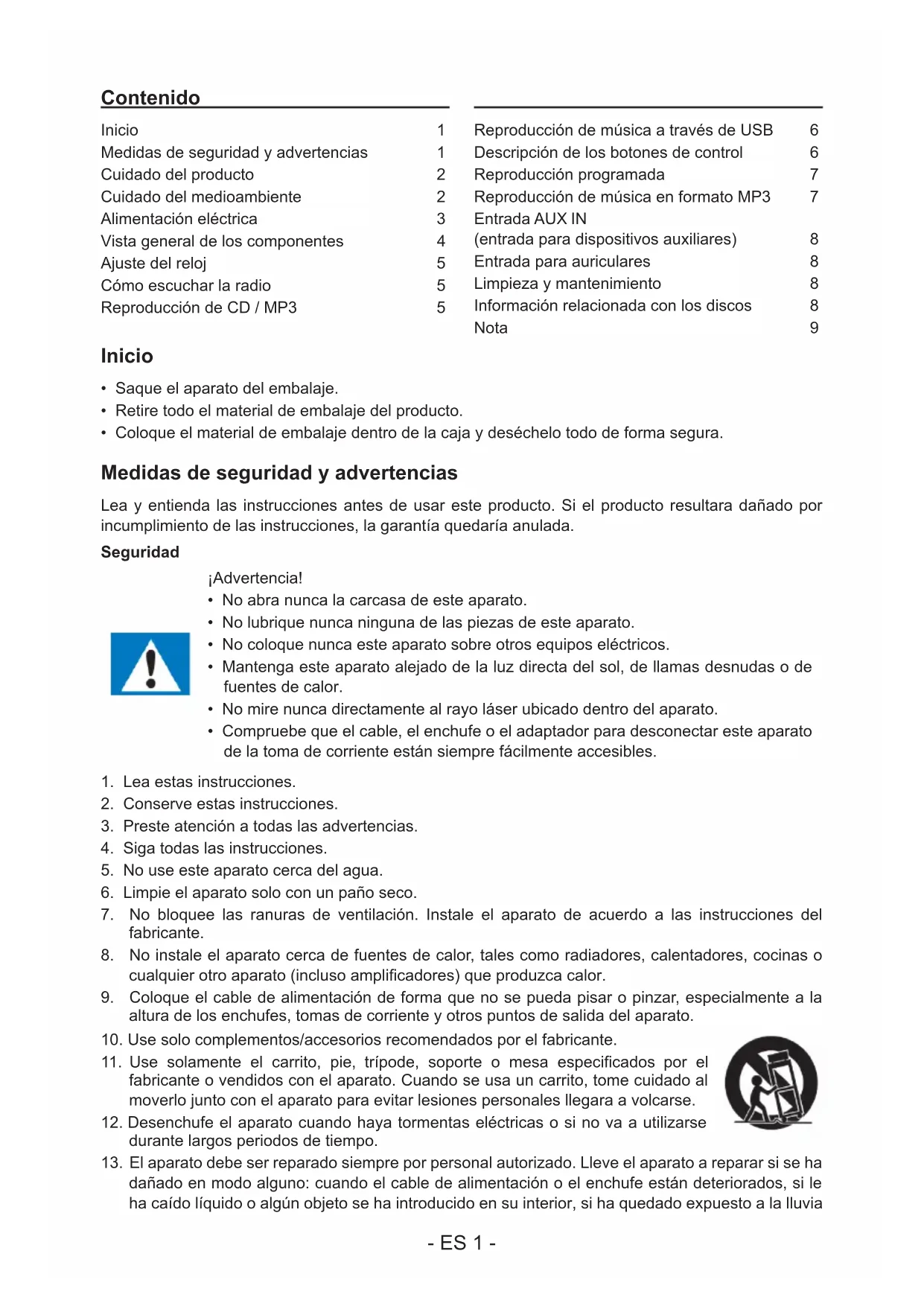 | Medidas de seguridad y advertencias | 1 |