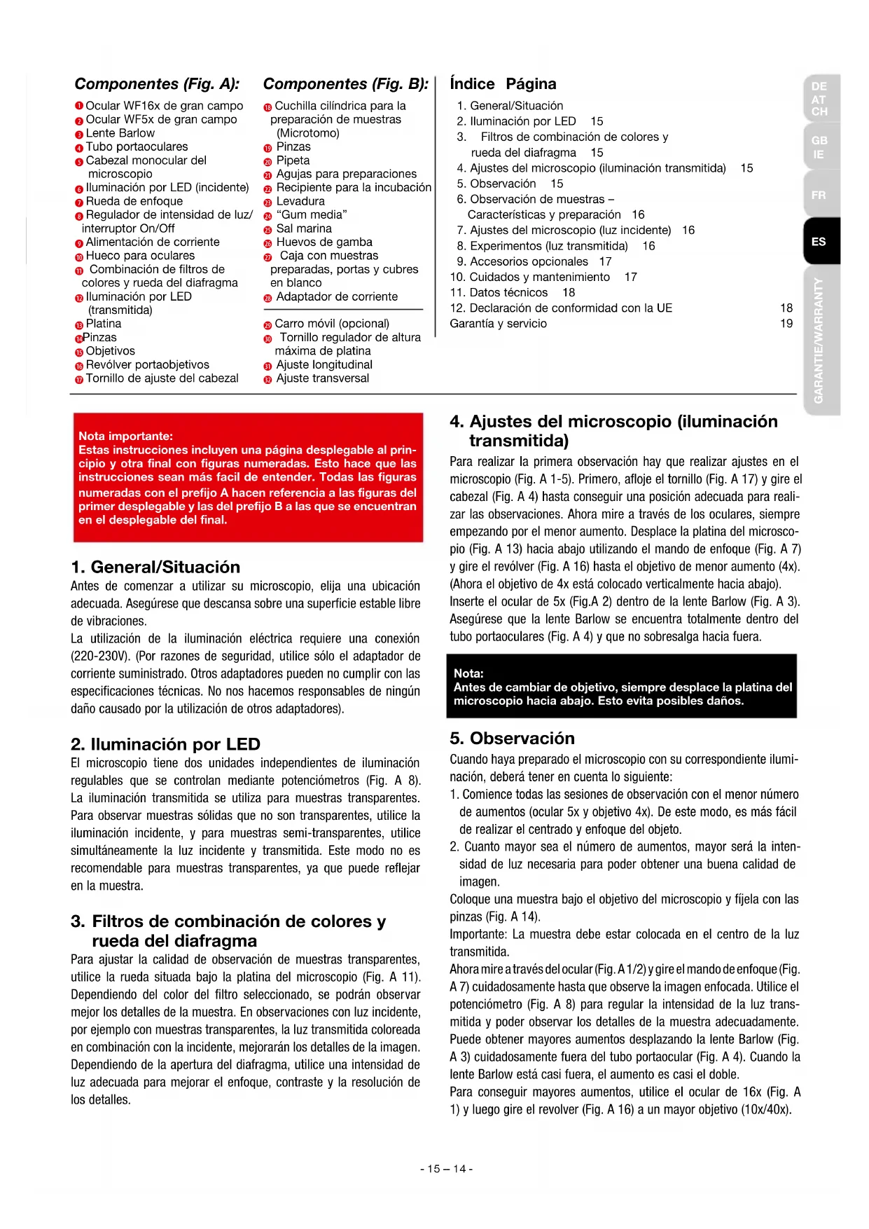 4. Ajustes del microscopio (iluminación transmitida) 15