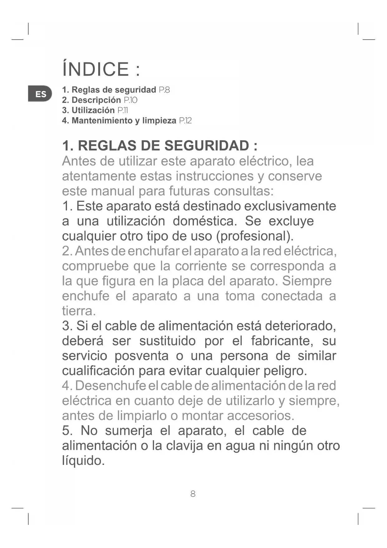 Antes de utilizar este aparato eléctrico, lea atentamente estas instrucciones y conserve este manual para futuras consultas: