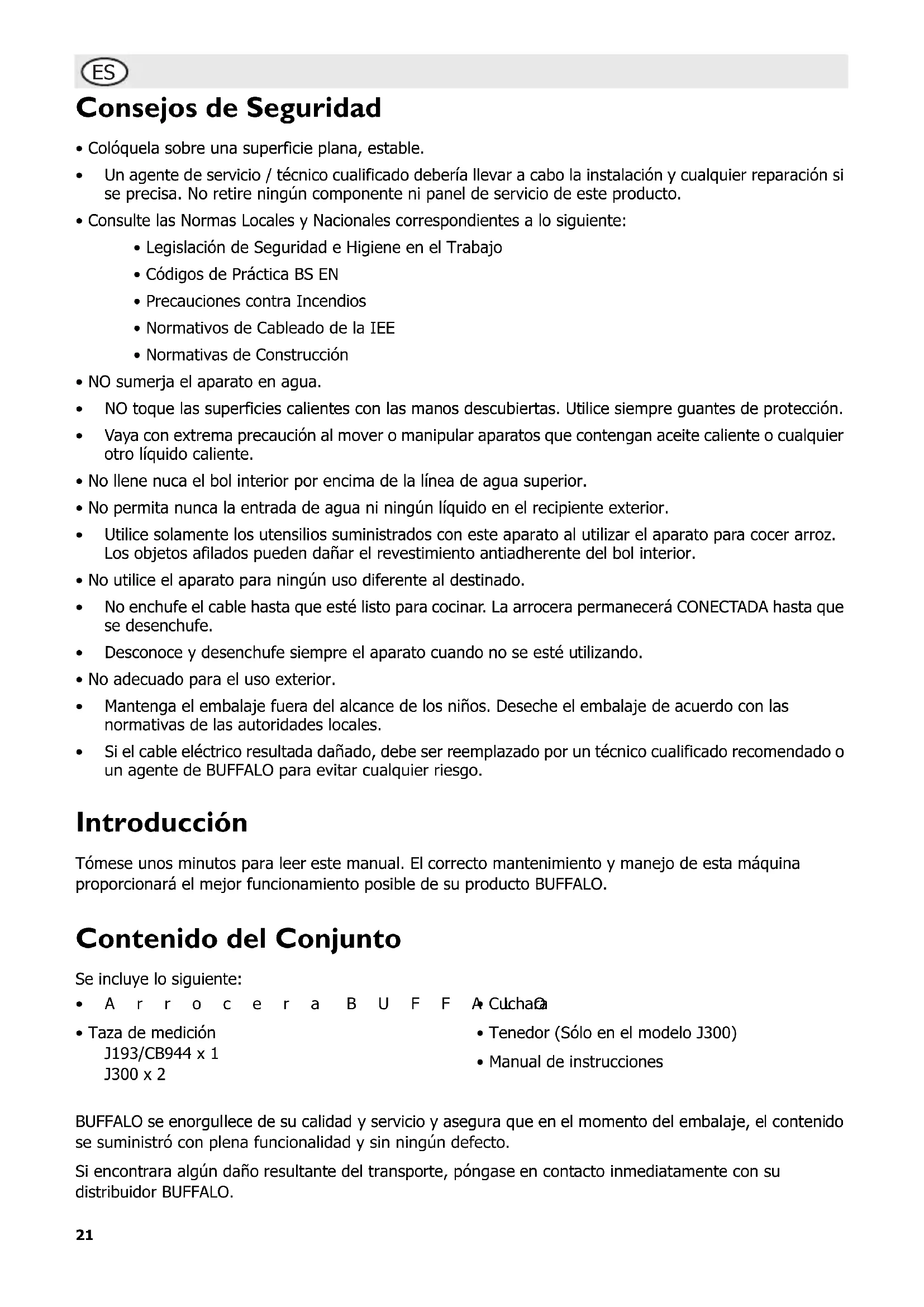 J300 - Olla arrocera BUFFALO - Manual de uso y guía de instrucciones gratis