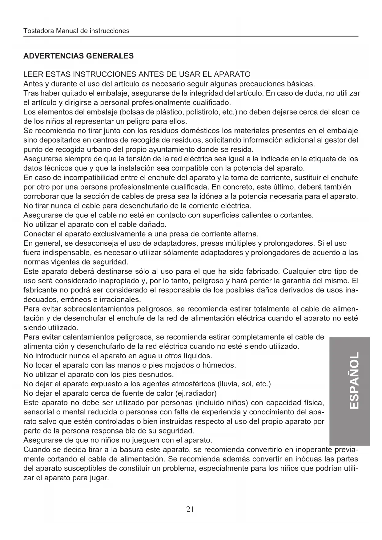 - TOSTADORA - MANUAL DE INSTRUCCIONES