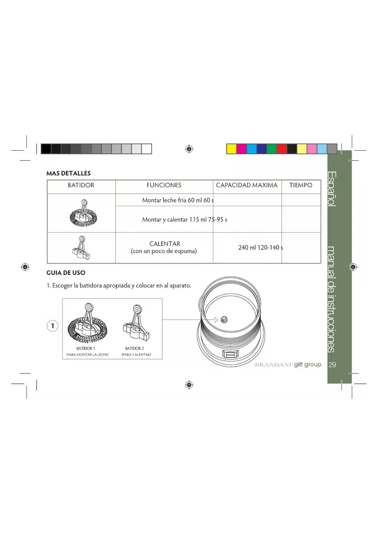 Cremino 55534 - Espumador de leche Brandani - Manual de uso y guía de instrucciones gratis