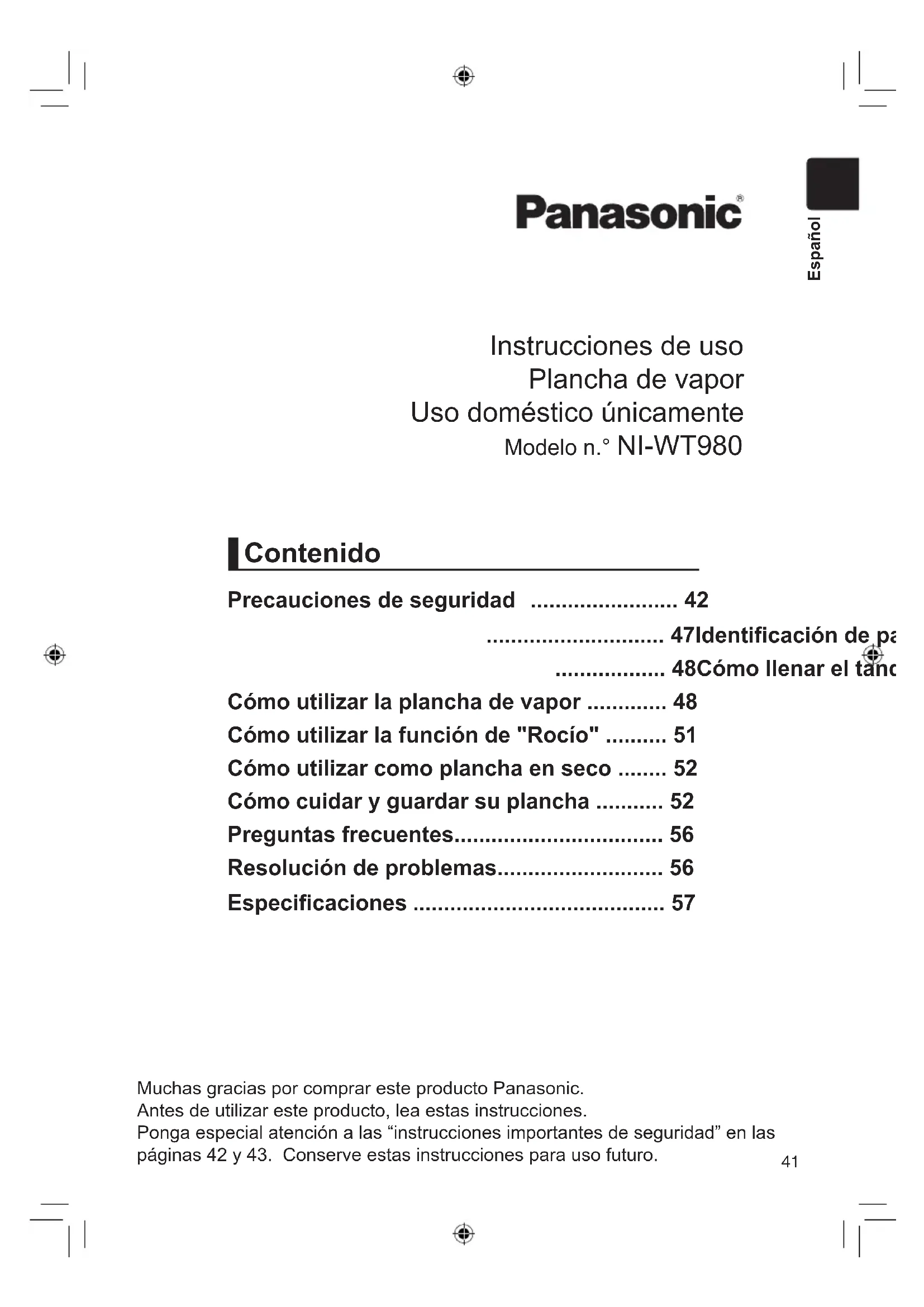 NIWT980 - Hierro PANASONIC - Manual de uso y guía de instrucciones gratis