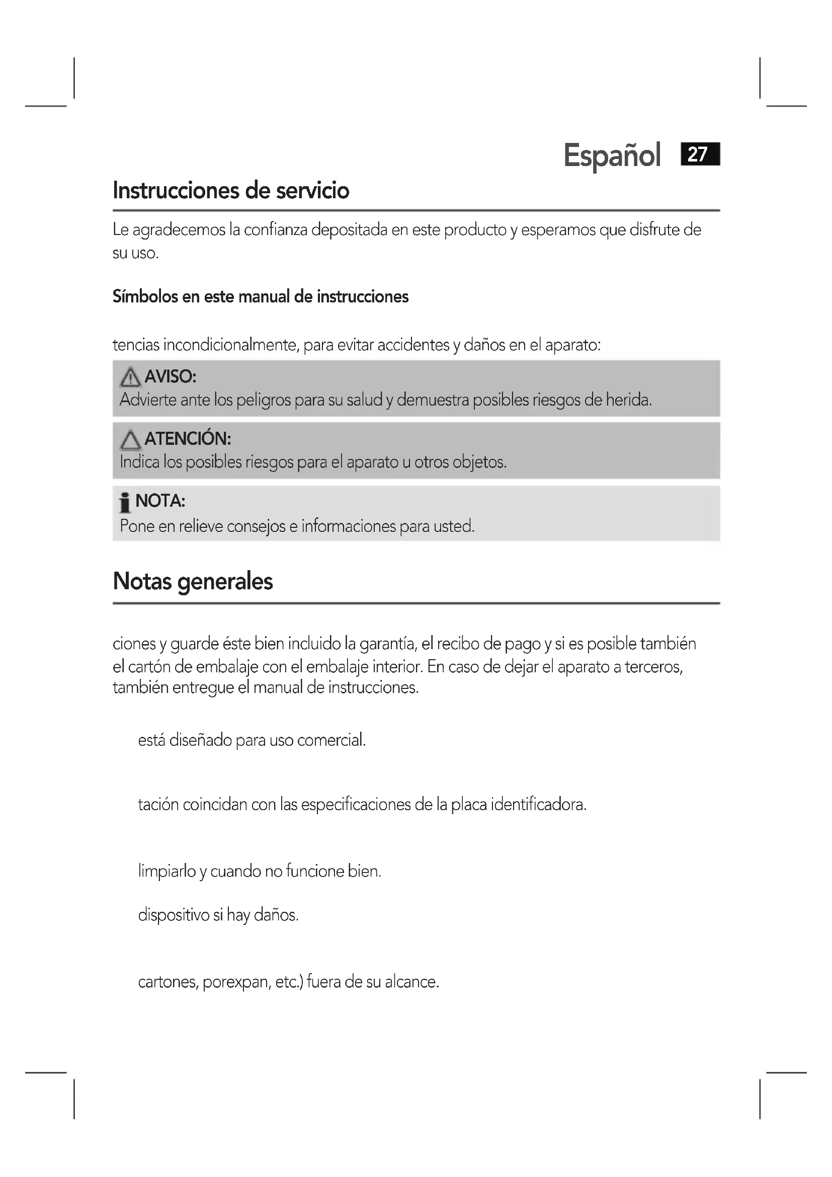Instrucciones de service.. 27