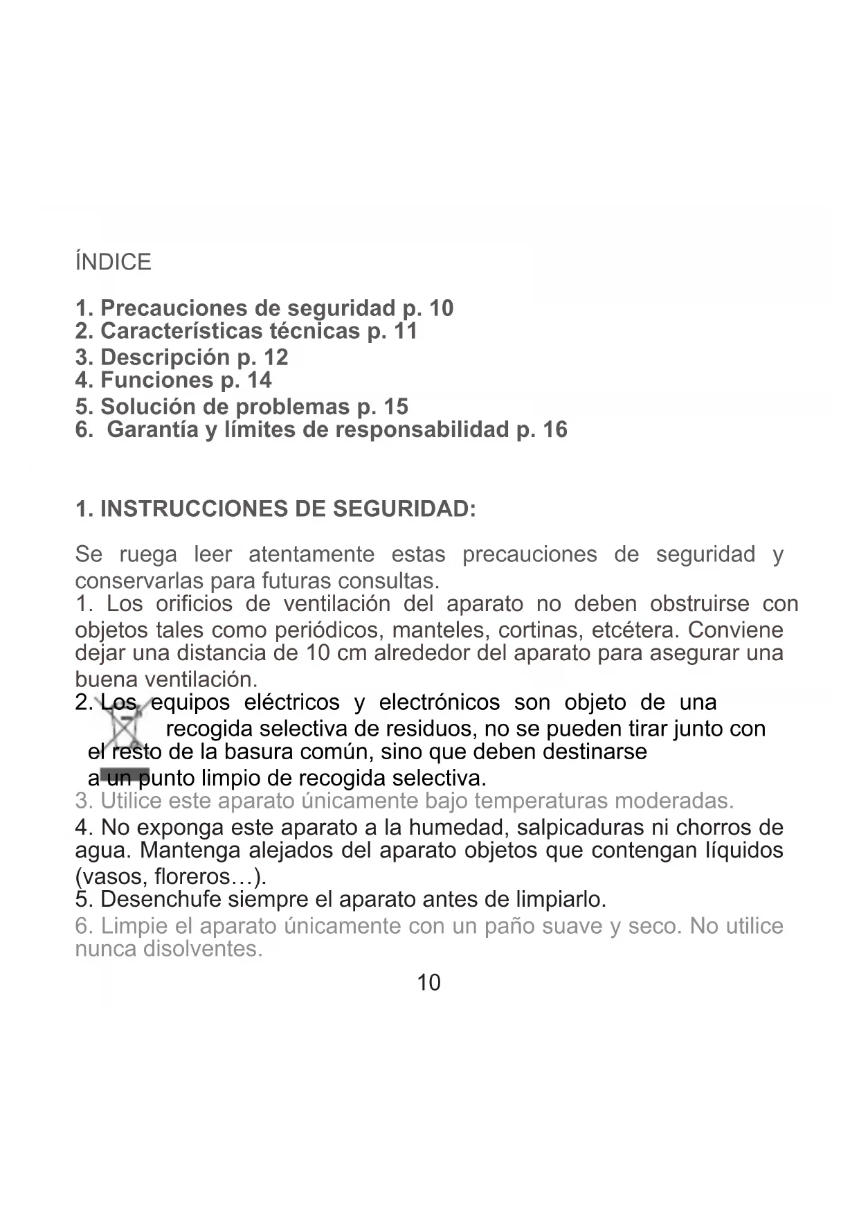 1. Precauciones de seguridad p. 10