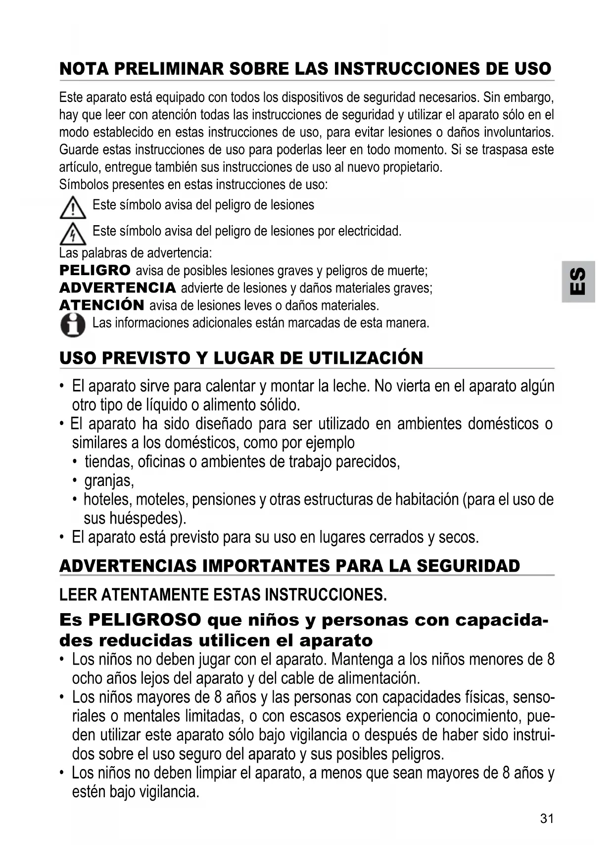 Es PELIGROSO que niños y personas con capacidades reducidas utilicen el aparato
