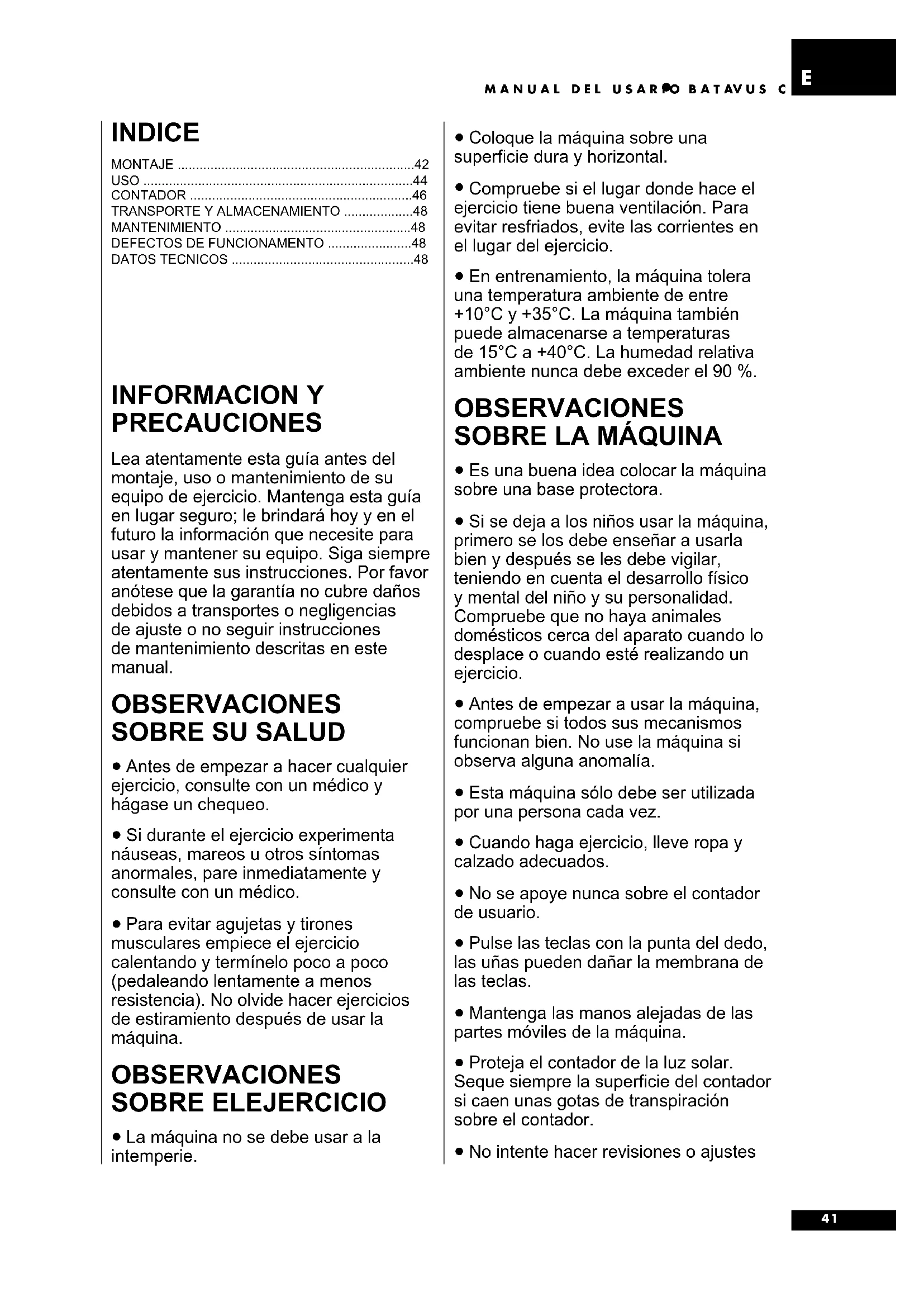 - El equipo ha sido diseñado para un uso en casa. La garantía Batavus se aplica sólo a defectos o malfuncionamiento en un uso en casa (24 meses). Para consultas concernientes a la garantía diríjase a su proprio distribuitor Batavus. Observe que las condiciones de la garantia pueden variar con arreglo al área de mercado.