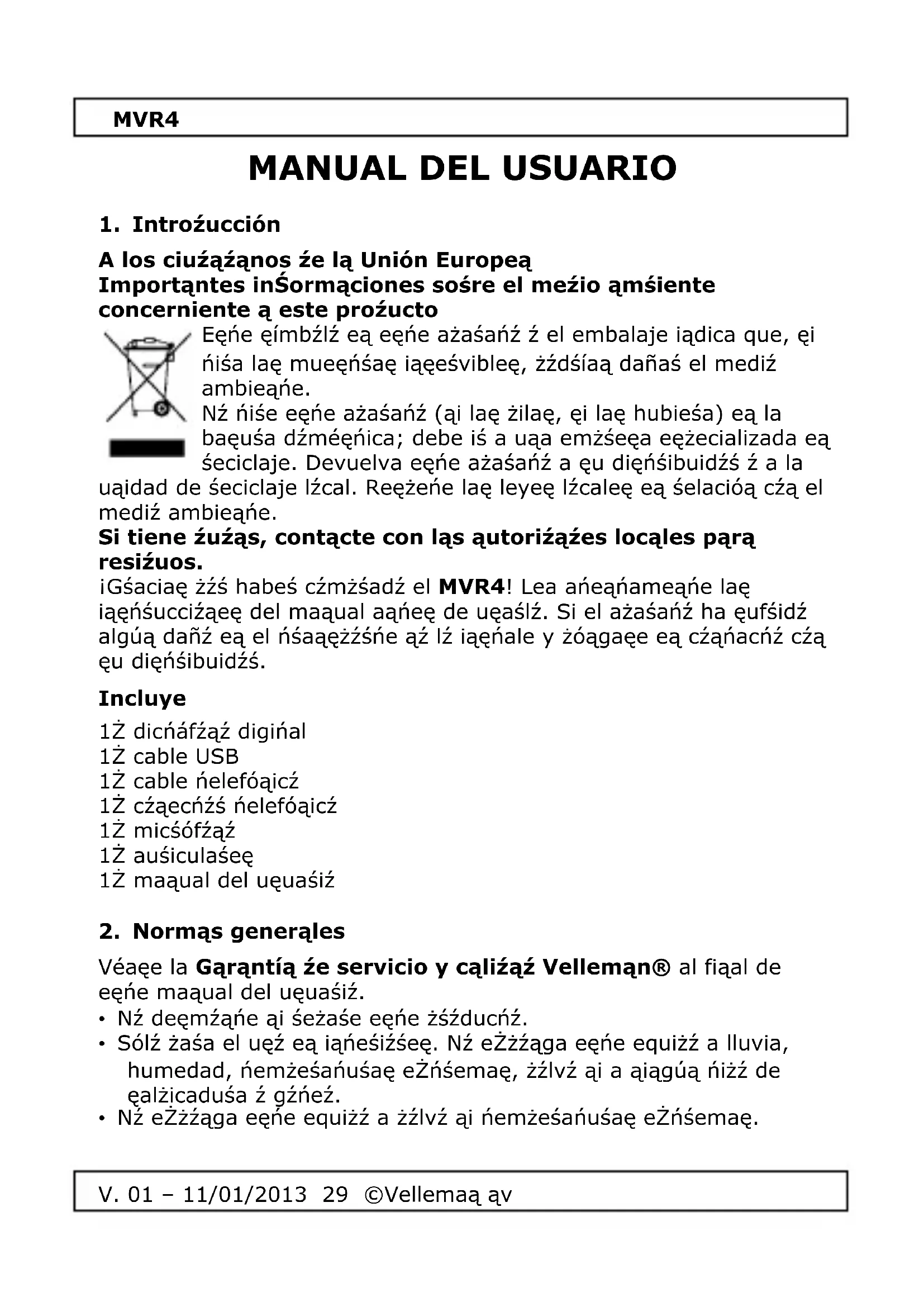 Véaçe la Garantía će servicio y caliñaz Vellemán® al fiàal de eçne maqual del uęuaśiz.