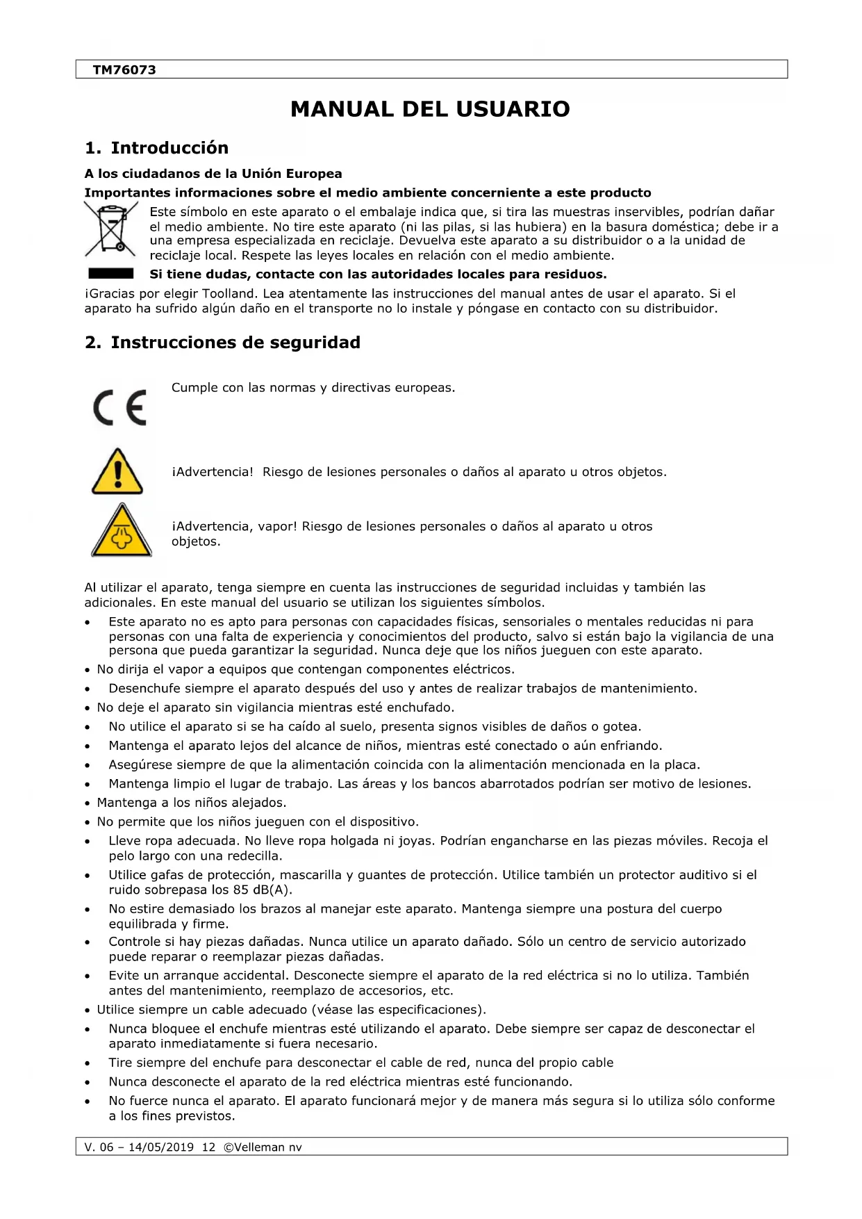 MANUAL DE USUARIO TM76073 Toolland