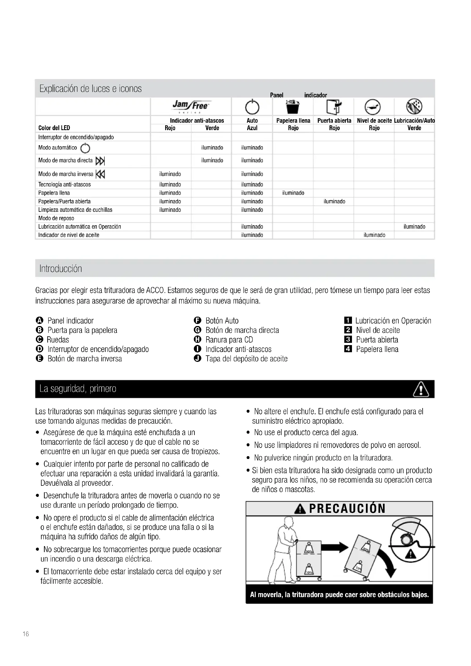 - Si bien esta trituradora ha sido designada como un producto seguro para los niños, no se recomienda su operación cerca de niños o mascotas. Introducción Gracias por elegir esta trituradora de ACCO. Estamos seguros de que le será de gran utilidad, pero tómese un tiempo para leer estas instrucciones para asegurarse de aprovechar al máximo su nueva máquina.