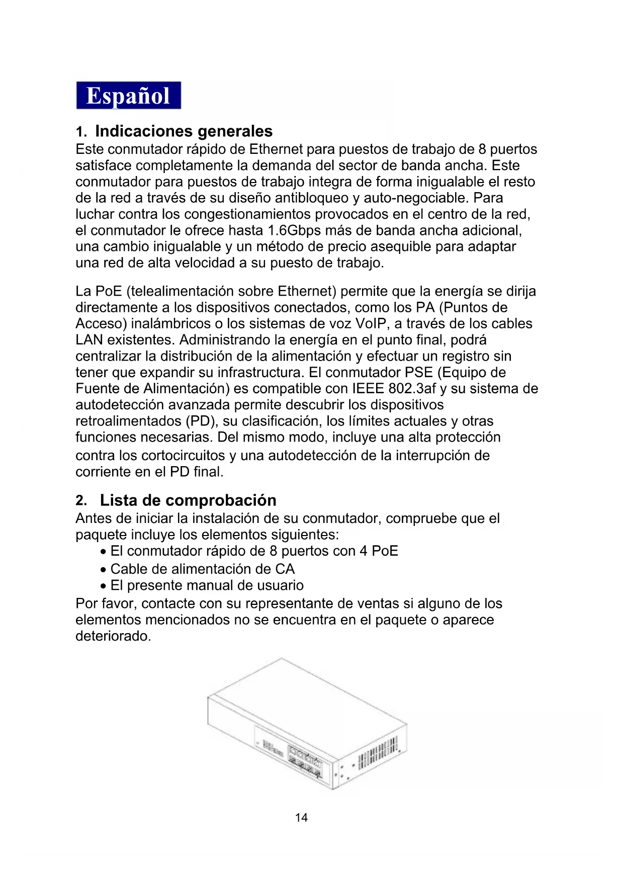 - El conmutador rápido de 8 puertos con 4 PoE
