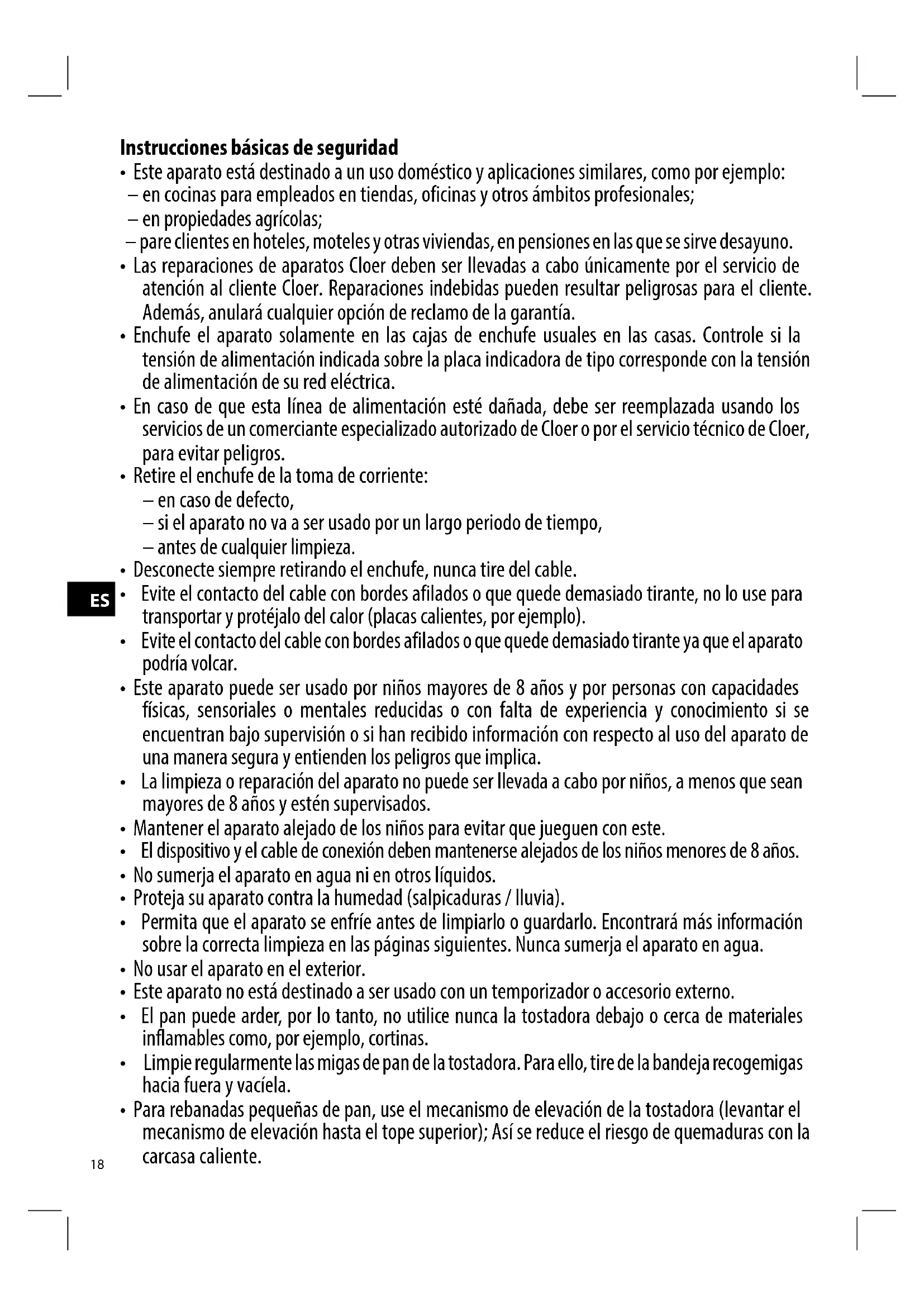 Los electrodomesticos Cloer cumplen con los requisitos actuales de seguridad y la normativa de la CE. Si se dunga el caso de que su aparatoonga un defecto o no funciona correctamente,pongase en contacto con su distribuidor.