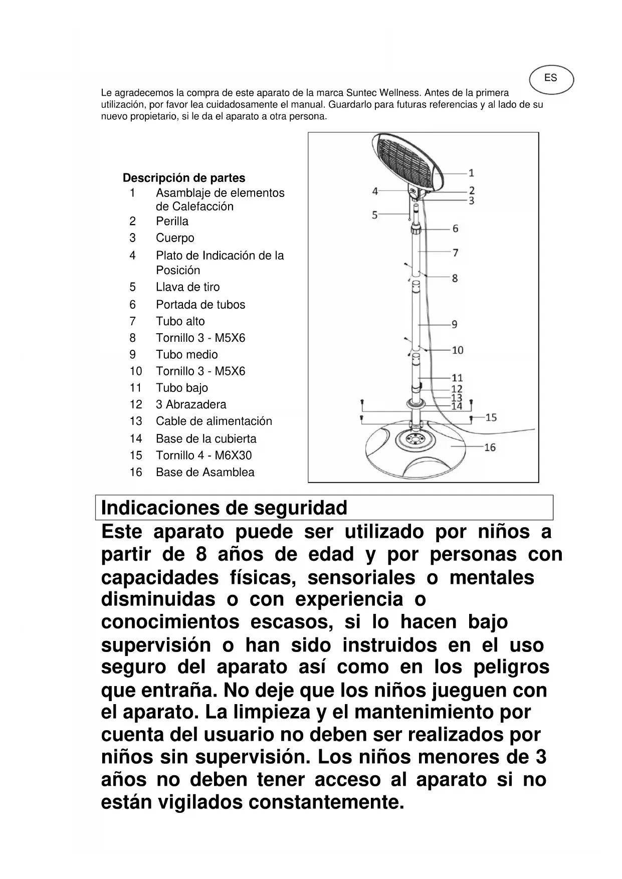 Base de AsambleaLos niños de edades comprendidas entre 3 y 8 años únicamente pueden encender y apagar el aparato con la condición de que el aparato esté situado e instalado en su lugar de uso normal, que estén vigilados y hayan sido instruidos en el uso seguro del mismo y que hayan comprendido los peligros potenciales del aparato. Los niños de edades comprendidas entre 3 y 8 años no deben enchufar el aparato a la toma de corriente, regularlo, limpiarlo ni llevar a cabo el mantenimiento. ADVERTENCIAS!