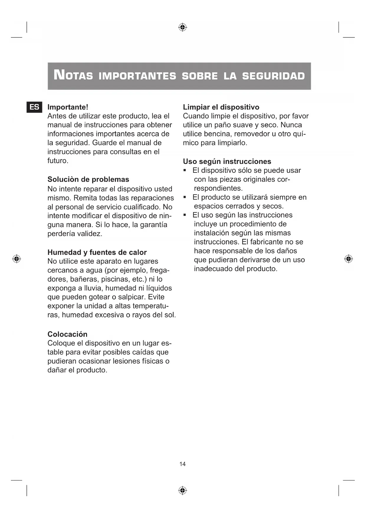 - El dispositivo solo se pueda usar con las piezas originales correspondentes.