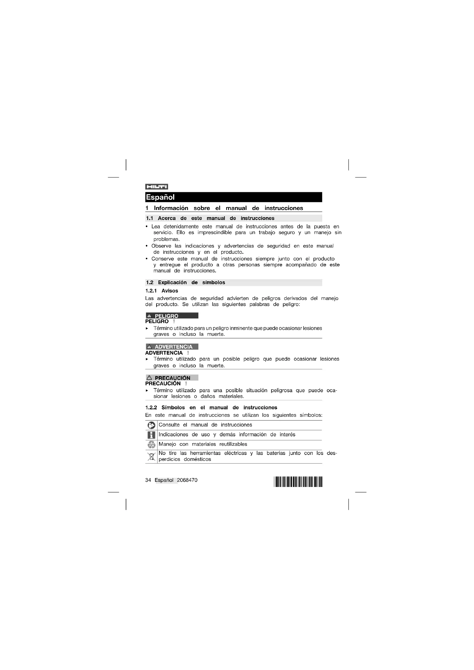 - Para el transporte o envio del producto, utilise el embalaje original de Hilti o un embalaje equivalente.
