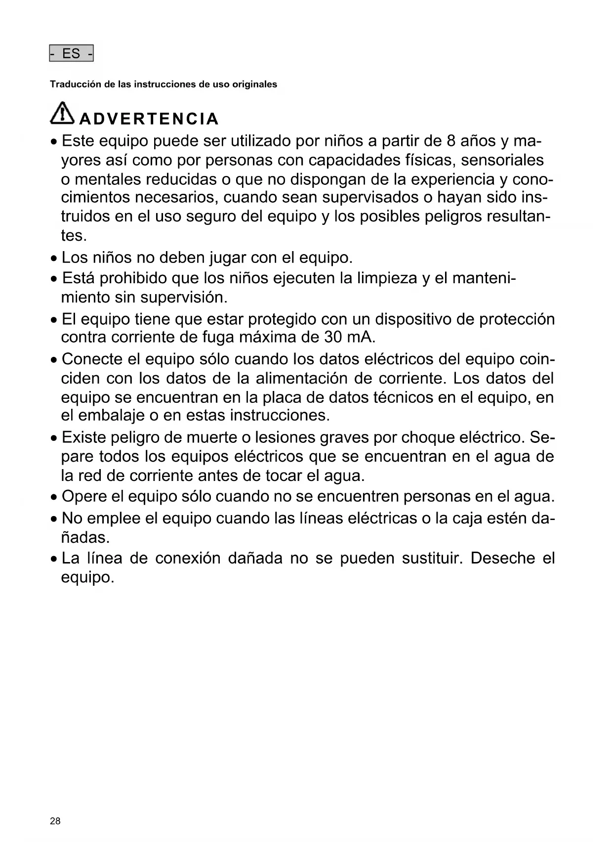 - ES - Traducción de las instrucciones de uso originales ADVERTENCIA