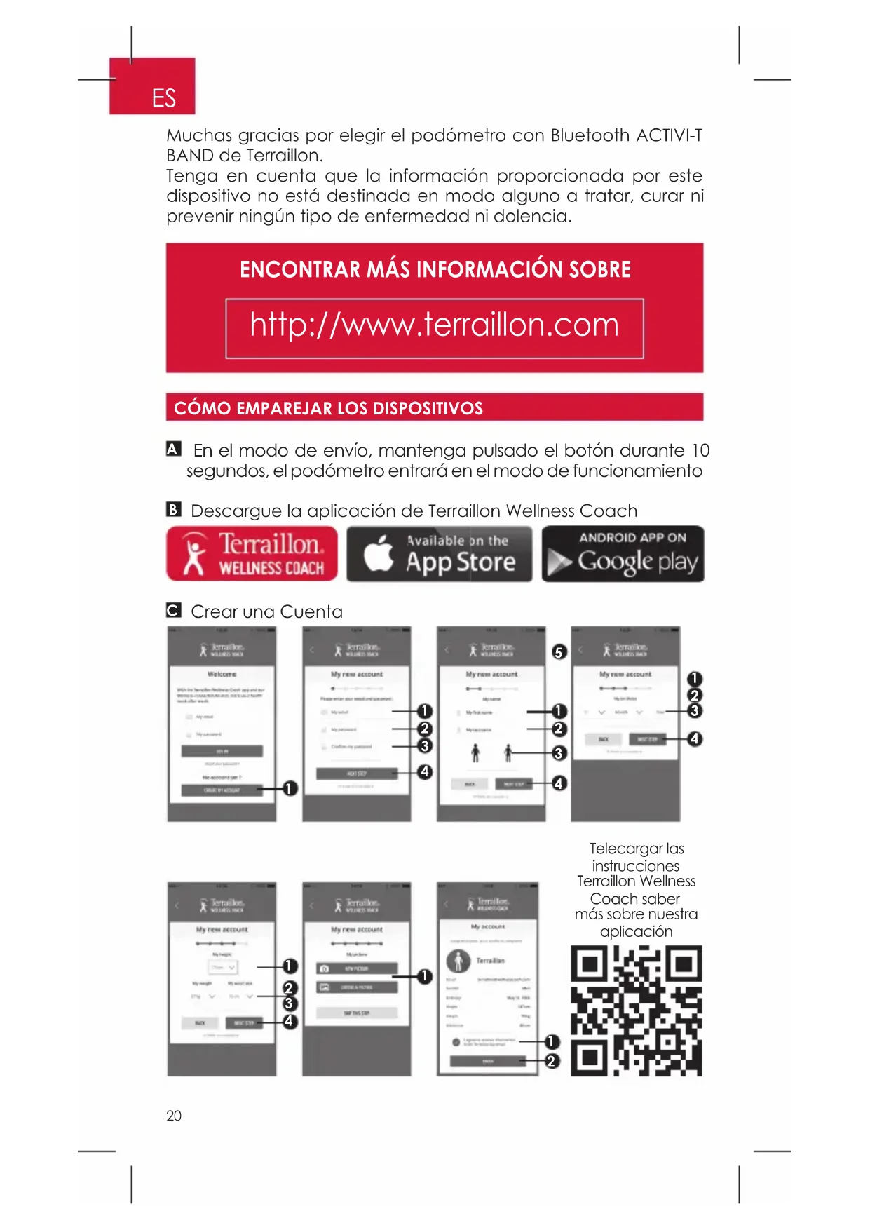 Crear una Cuenta Telecargar las instrucciones Terraillon Wellness Coach saber más sobre nuestra aplicación