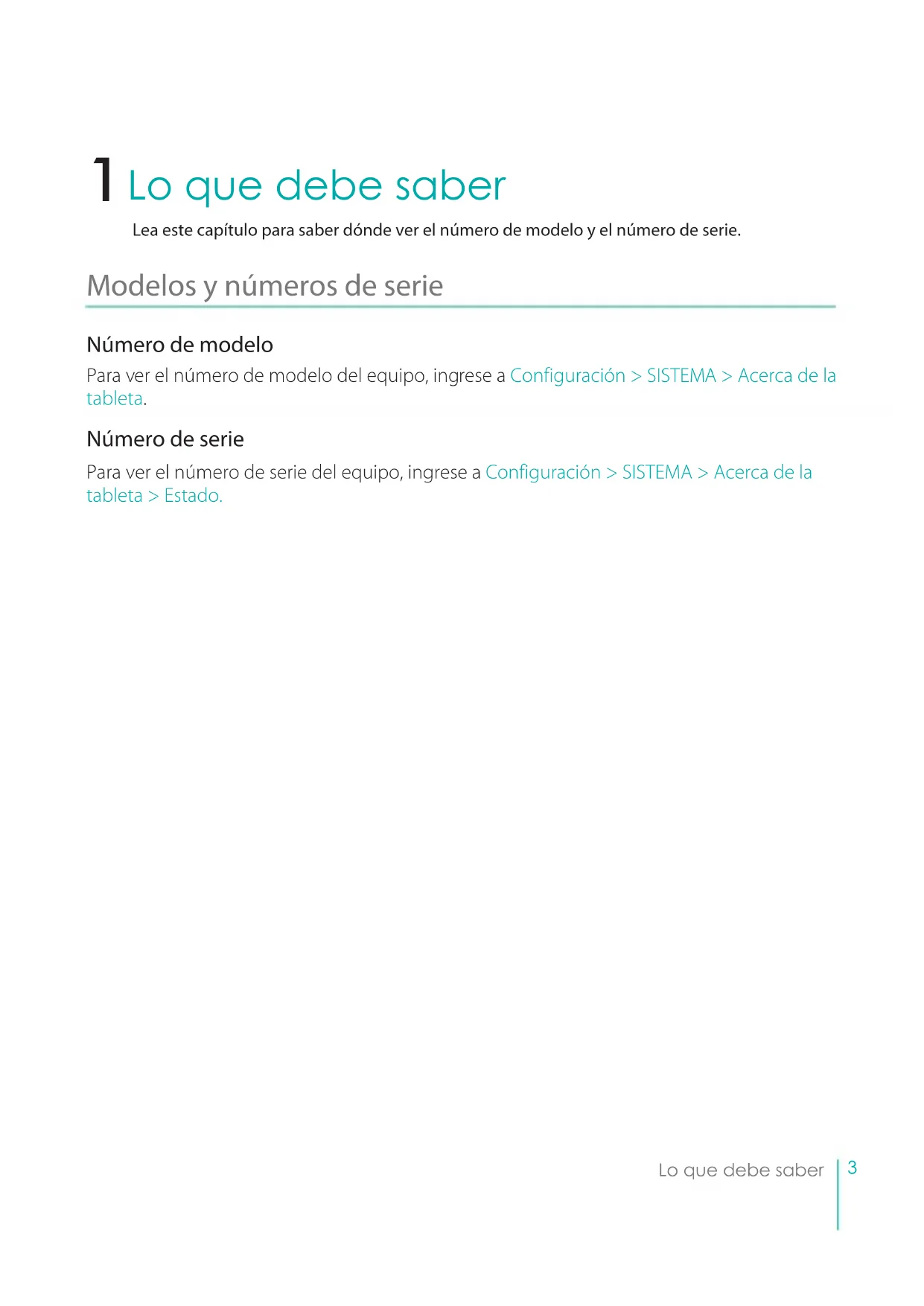 Para ver el número de modelo del equipo, ingrese a Configuración > SISTEMA > Acerca de la tableta.