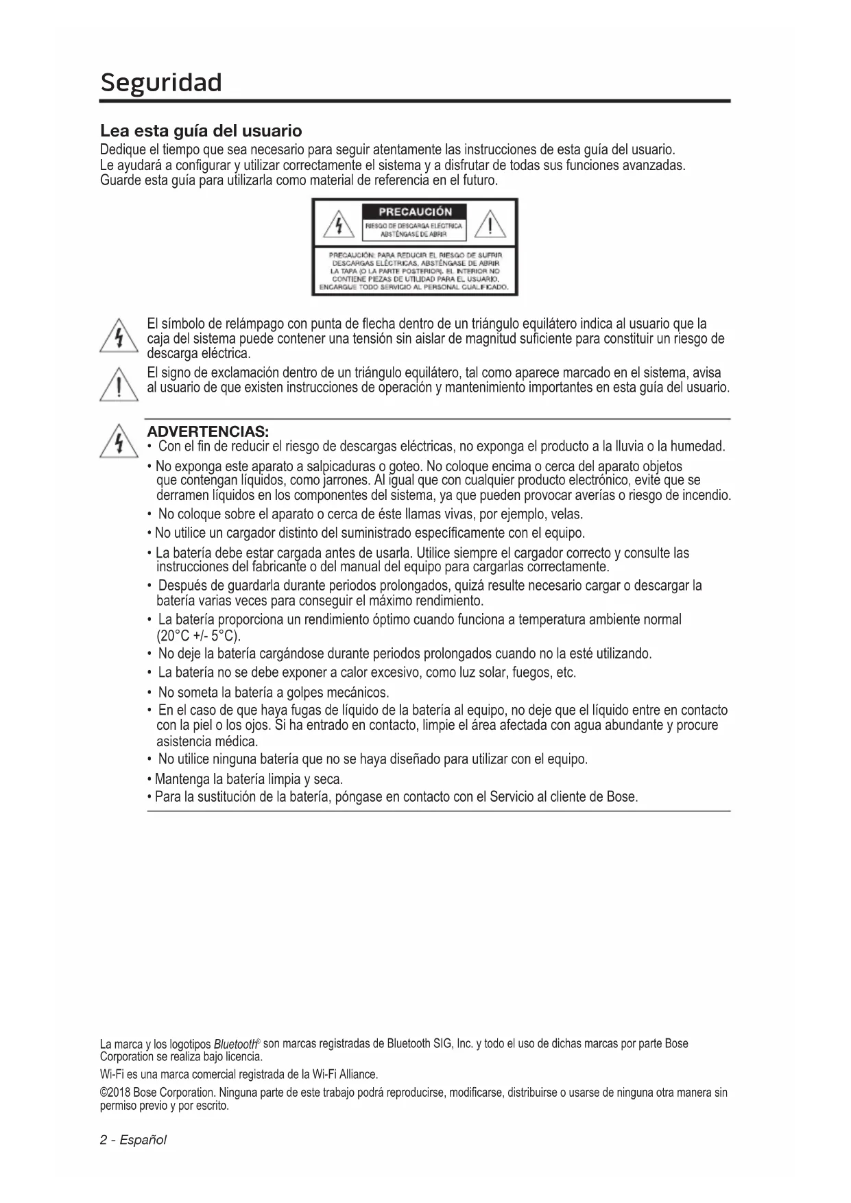 ©2018 Bose Corporation. Ninguna parte de este trabajoouldra reproducirse, modificarse, distribuirse o usarse de ninguna other manera sin permiso previo y por escrito.