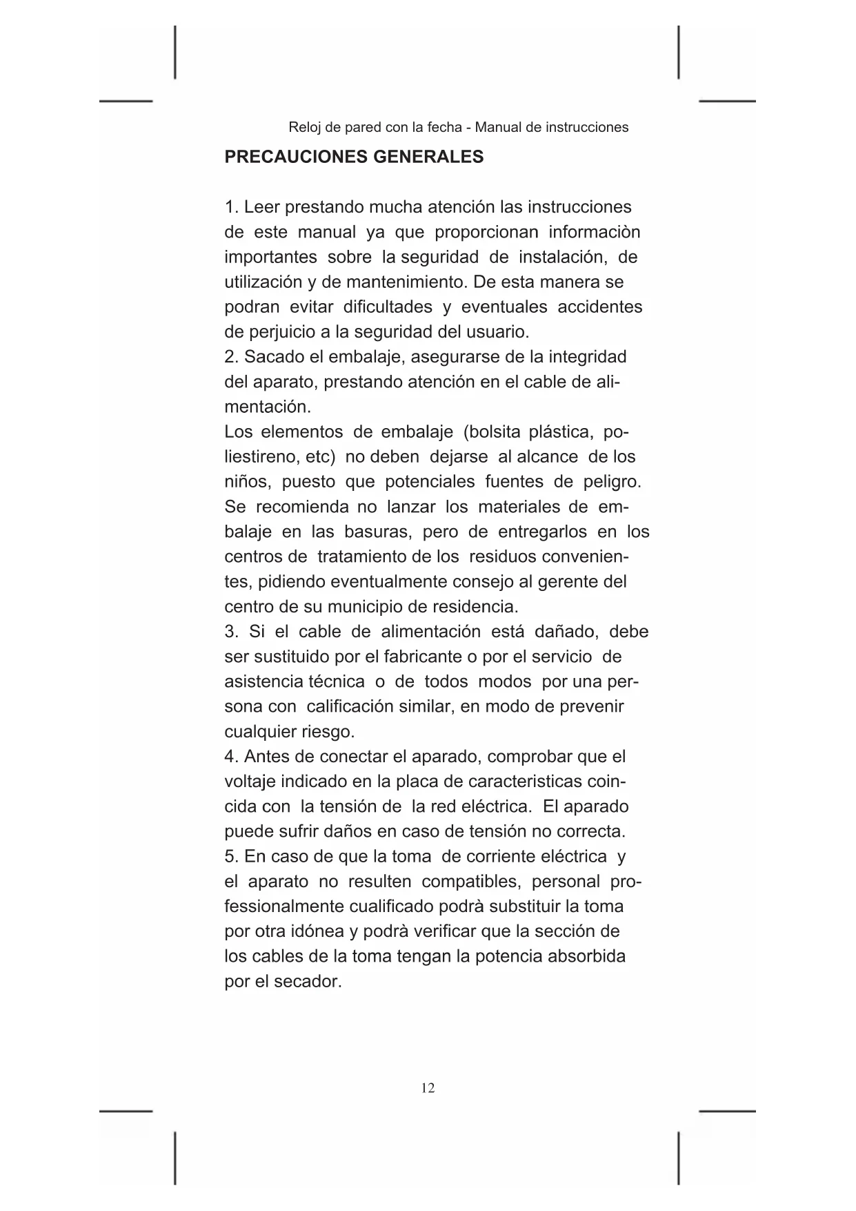 Reloj de pared con la Fecha - Manual de instrucciones
