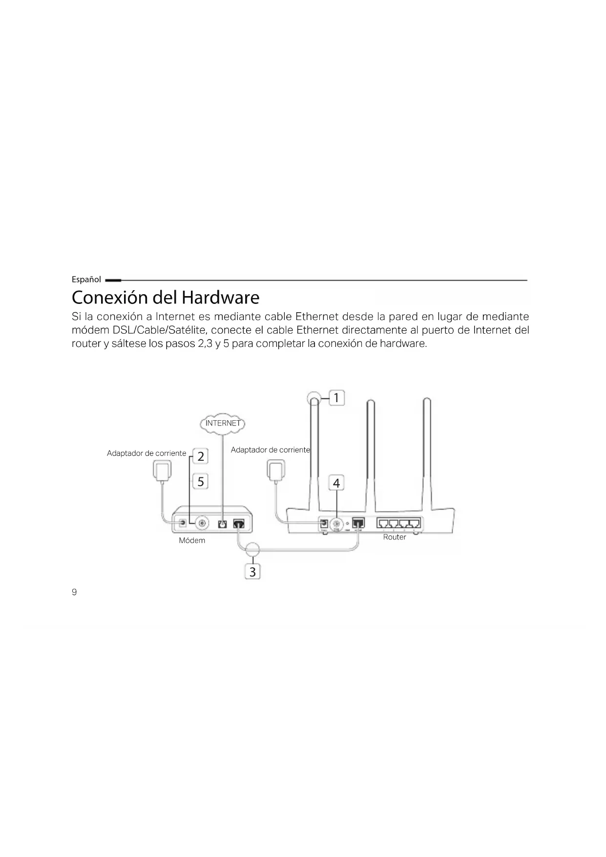 Adaptador de corriente Adaptador de corriente INTERNET Módem Router10 Español