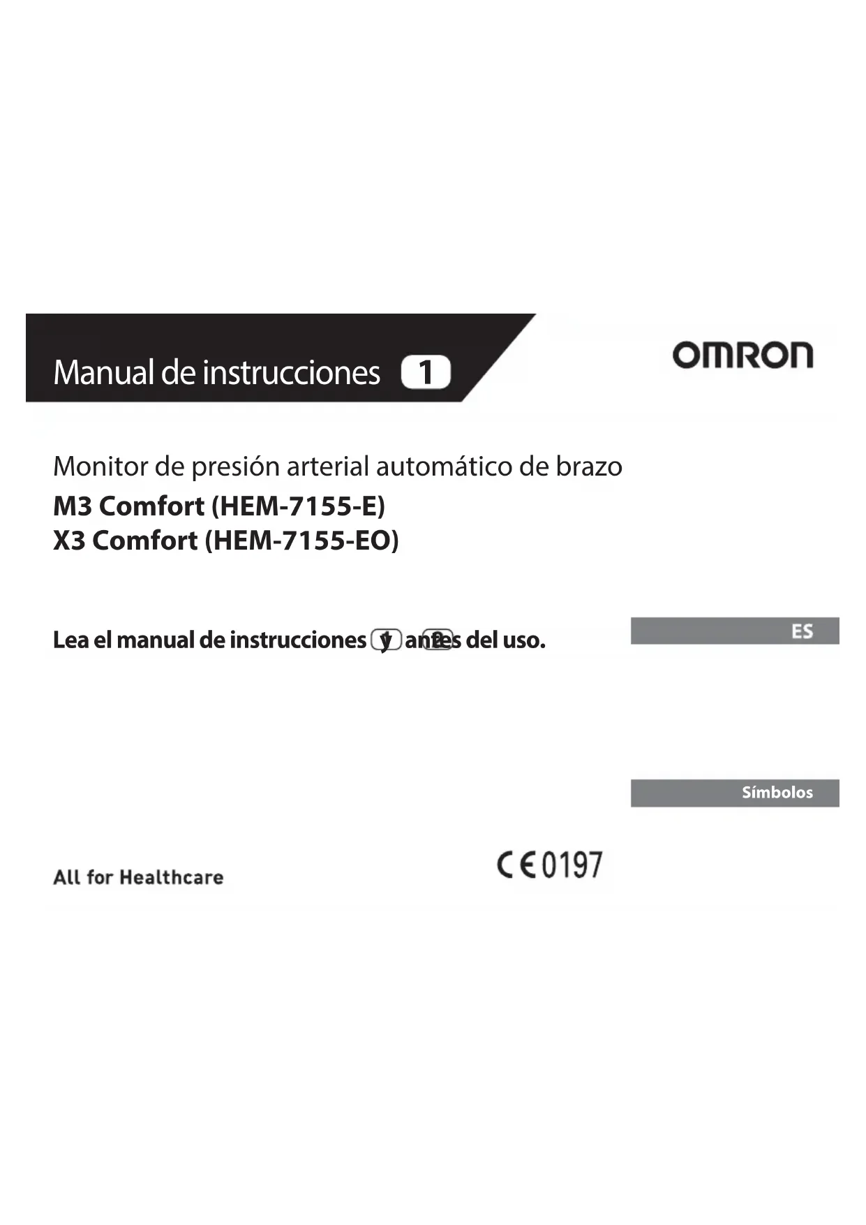 Monitor de presión arterial automático de brazo M3 Comfort (HEM-7155-E) X3 Comfort (HEM-7155-EO) Manual de instrucciones Símbolos Lea el manual de instrucciones y antes del uso.ES1