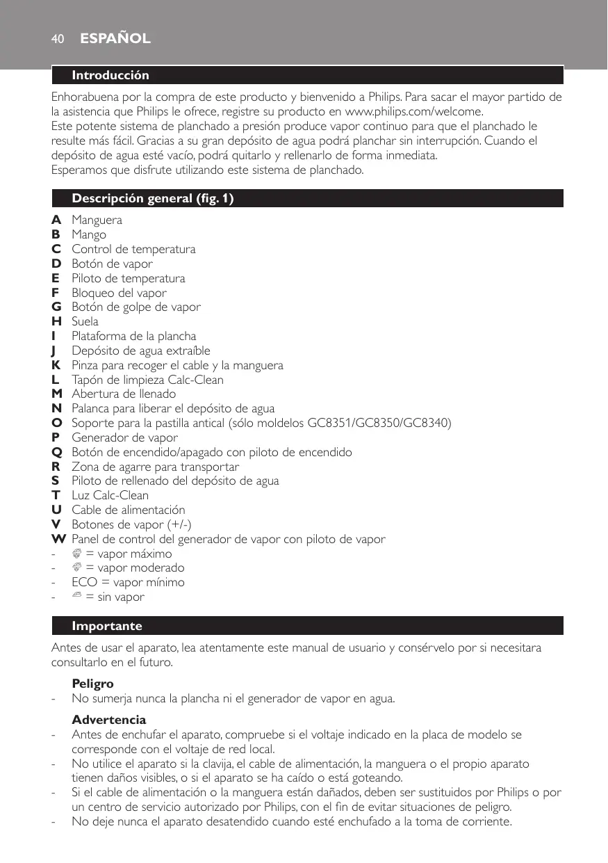 GC-8350 - Hierro PHILIPS - Manual de uso y guía de instrucciones gratis
