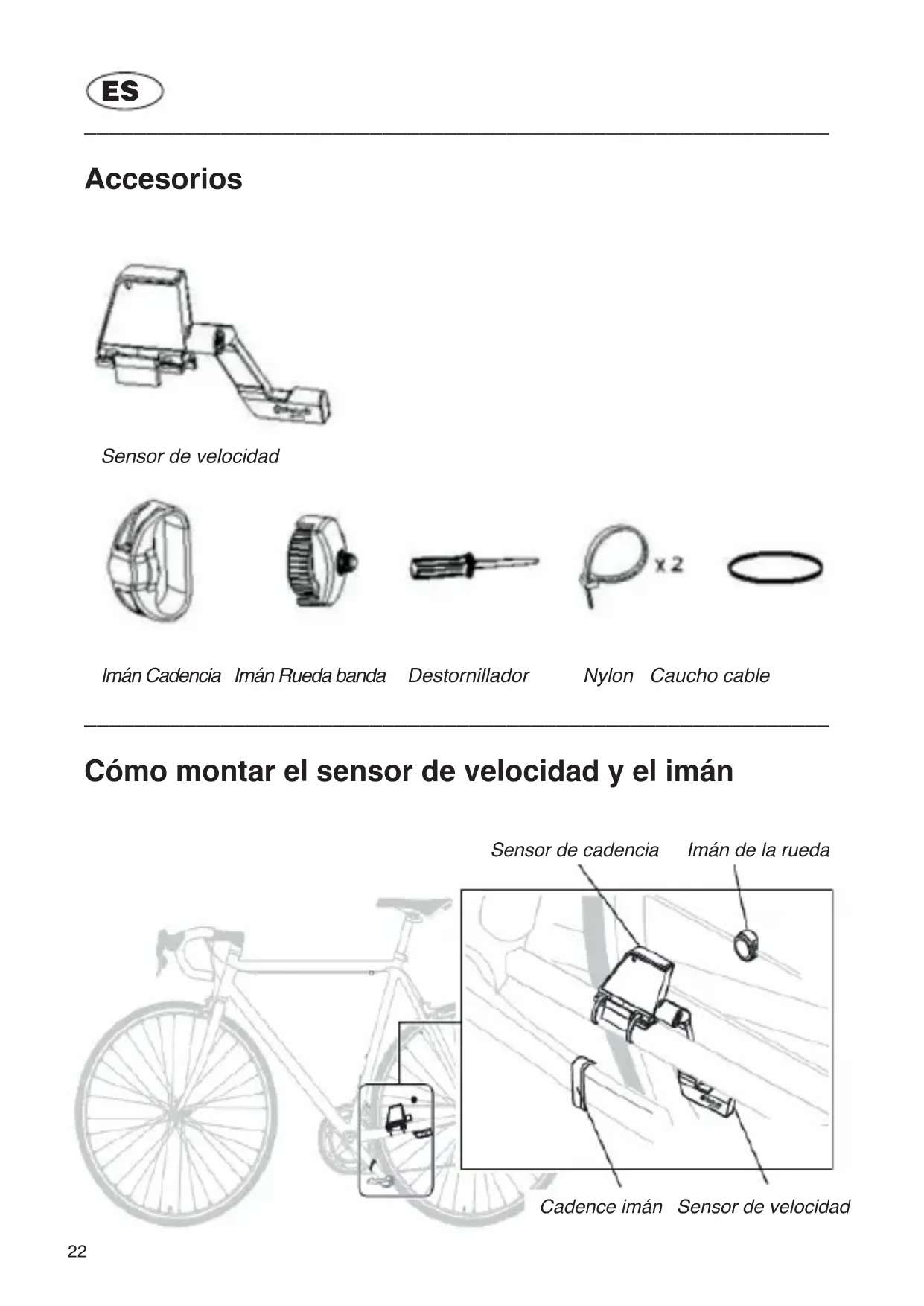 Cómo montar el sensor de velocidad y el imán Sensor de velocidad Imán Cadencia Imán Rueda banda Destornillador Nylon Caucho cable Sensor de cadencia Sensor de velocidad Imán de la rueda Cadence imán23 Cómo asegurar el sensor de velocidad Limpie bien un lugar adecuado en el tenedor bicicleta trasera para el sensor. No instale el sensor en el mismo lado de la cadena. Coloque el sensor con el logotipo fuera (no hacia la rueda).