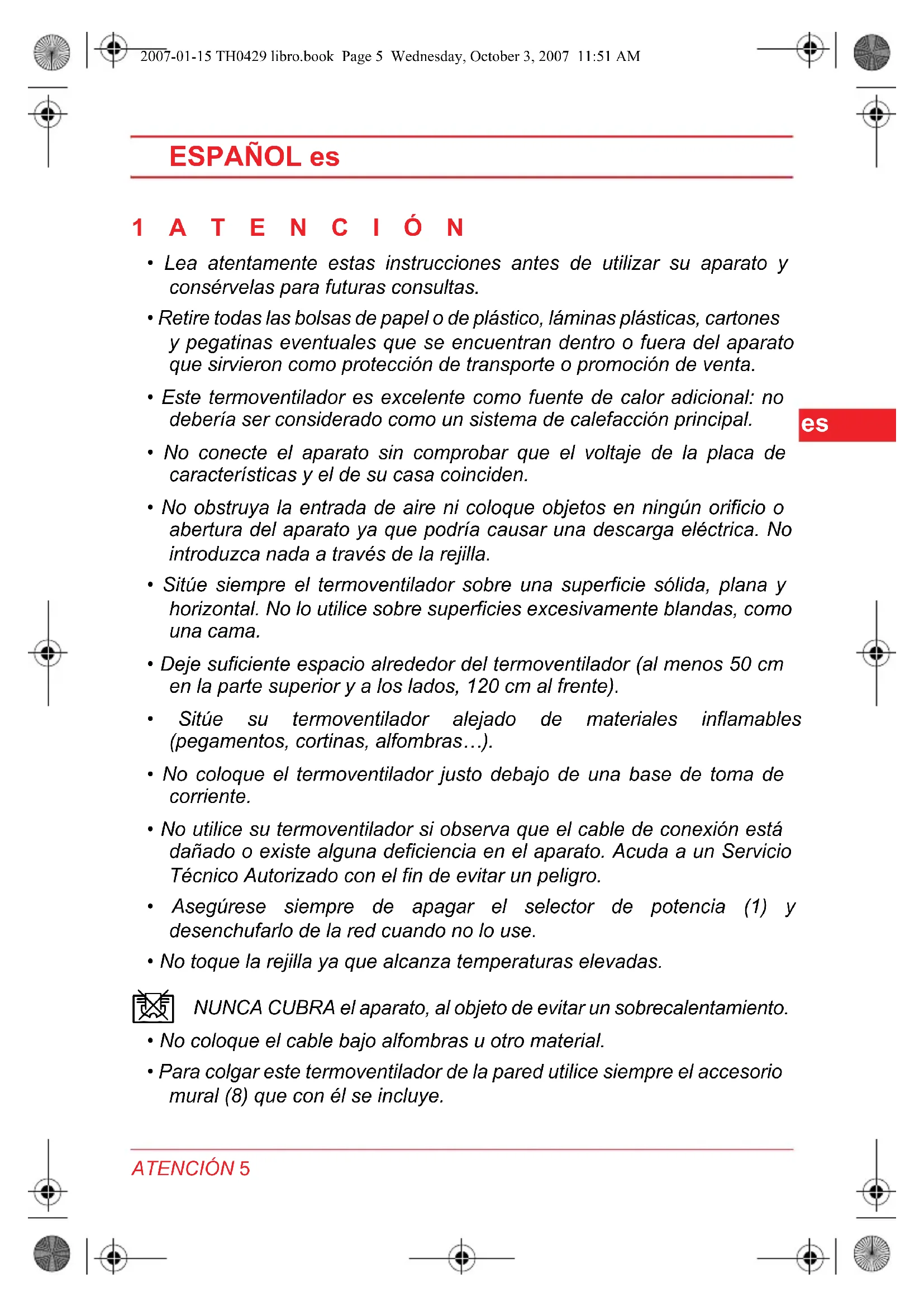 - No utilise el termoventilador para seperar ropa, ni deben muebles a menos de 50 cm del frontal del aparato, ni en habitaciones de menos de 4m^2 de planta.