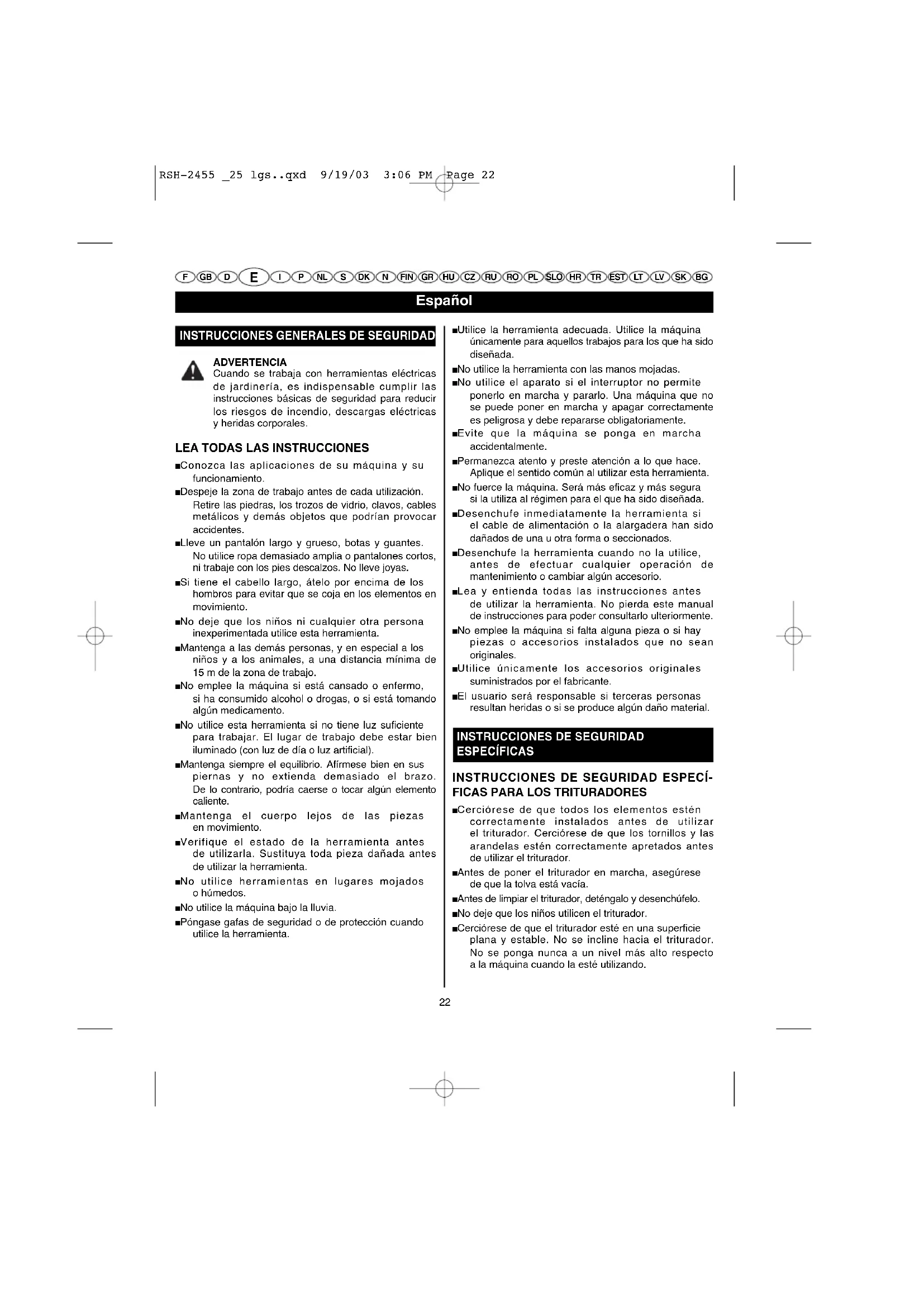Cuando se trabaja con Herramentas electricas de jardineria, es indispensableableFULIR las instrucciones baciales de segundad para reduir los riesgos de incendio, descargas electracas y heridas corporales.