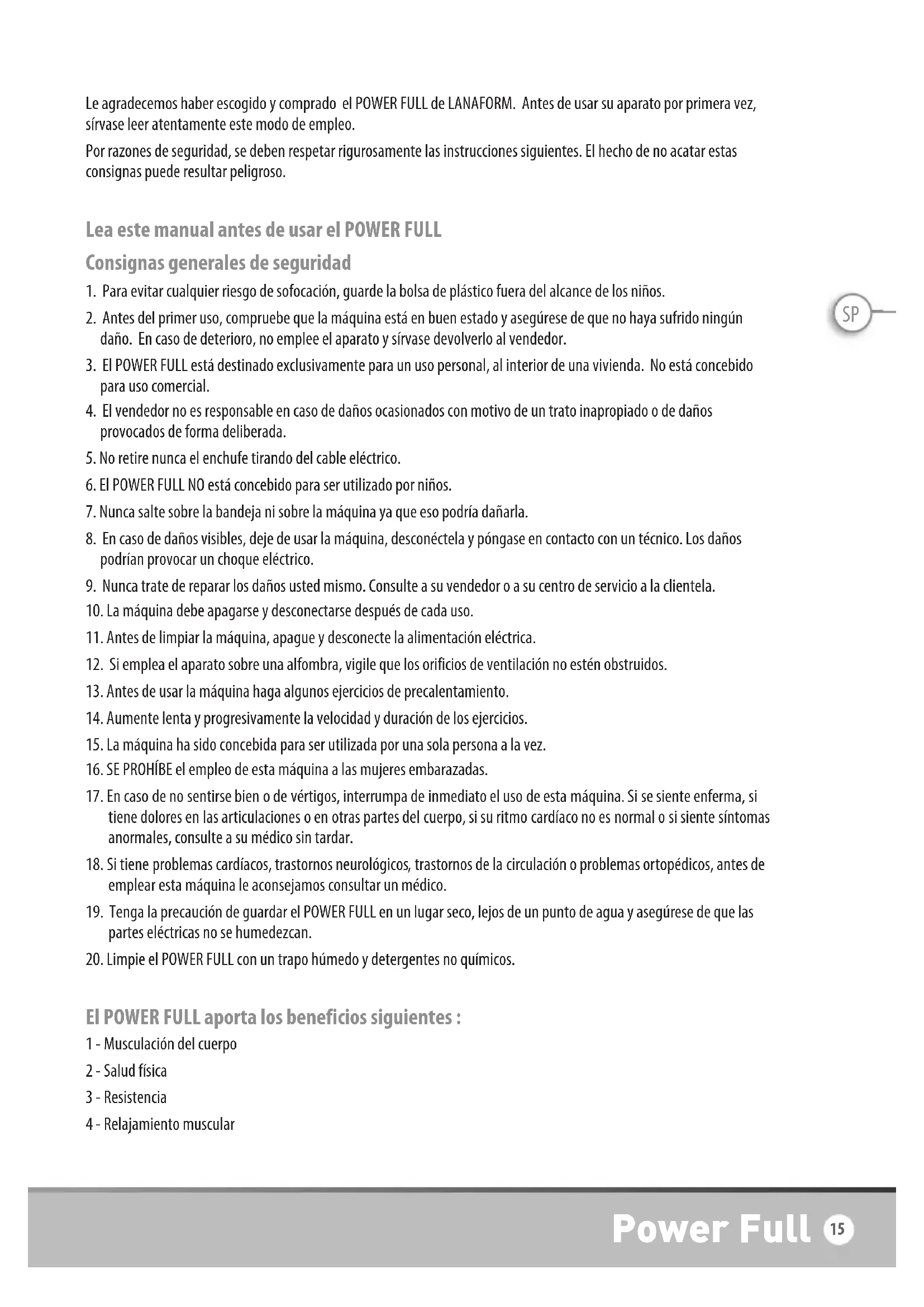 Encuentra gratis el manual del aparato Power Full LANAFORM en formato PDF.