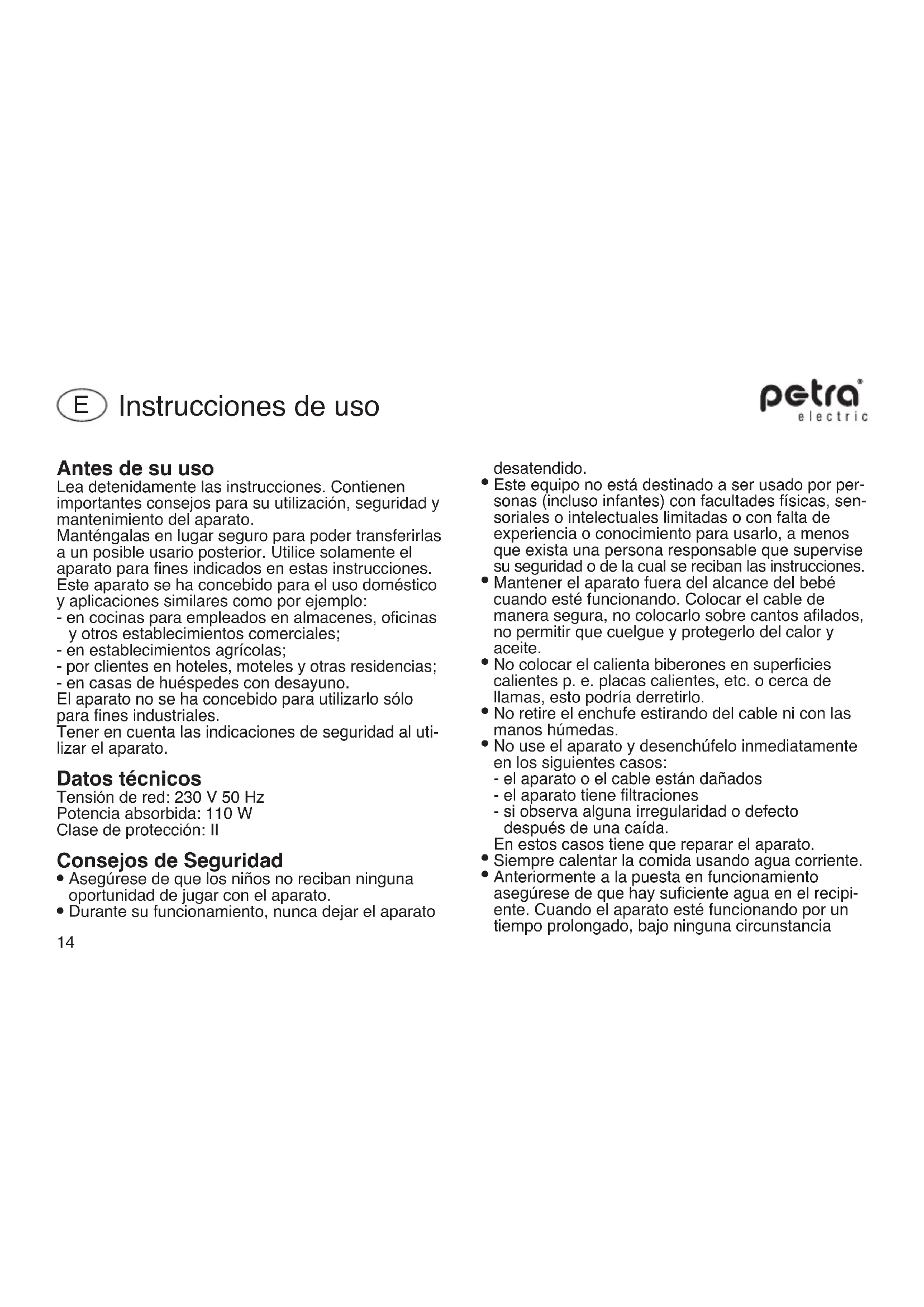 Encuentra gratis el manual del aparato BF3 Petra Electric en formato PDF.