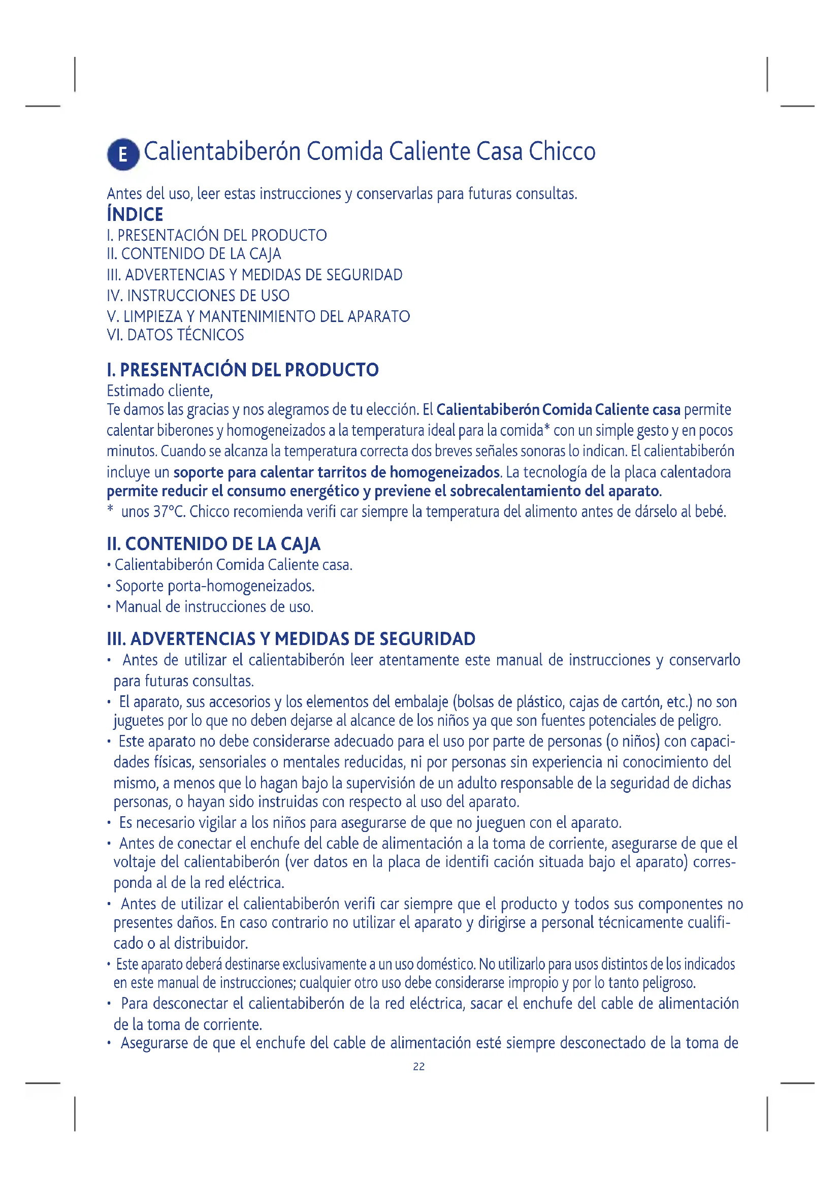 - Antes de utilizar el calientabiberón leer atentamente este manual de instrucciones y conservarlo para futuras consultas.