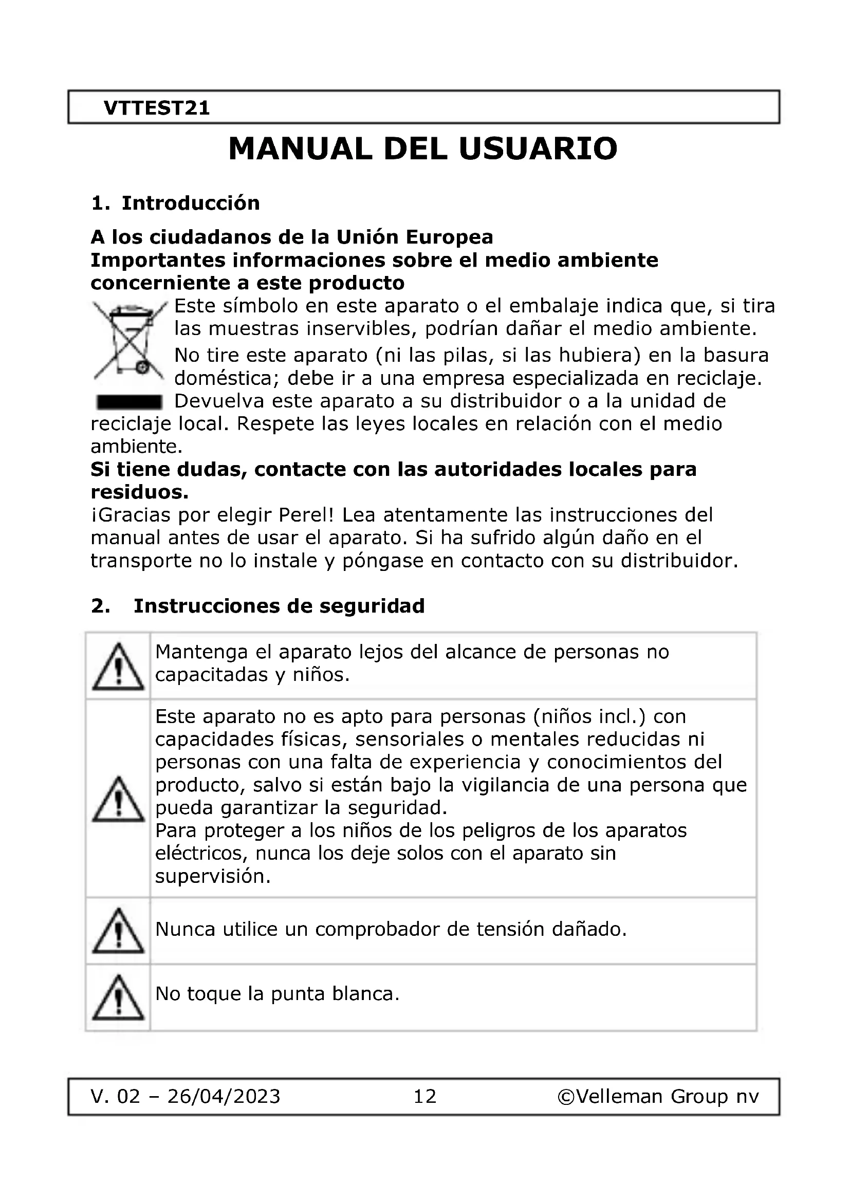 MANUAL DE USUARIO VTTEST21 VELLEMAN