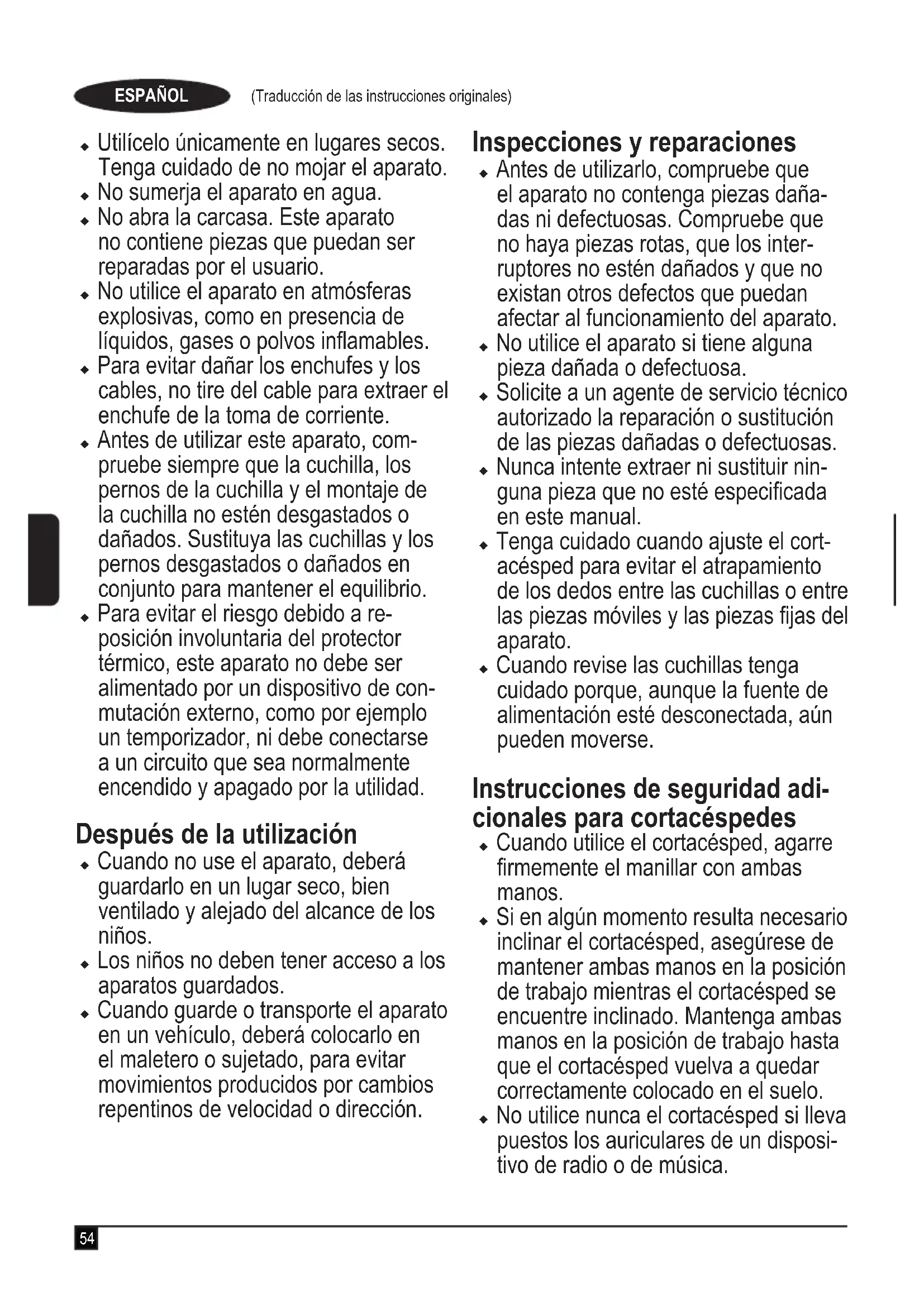 (Vertaling van de originele instructies) NEDERLANDS (Traducción de las instrucciones originales) ESPAÑOL