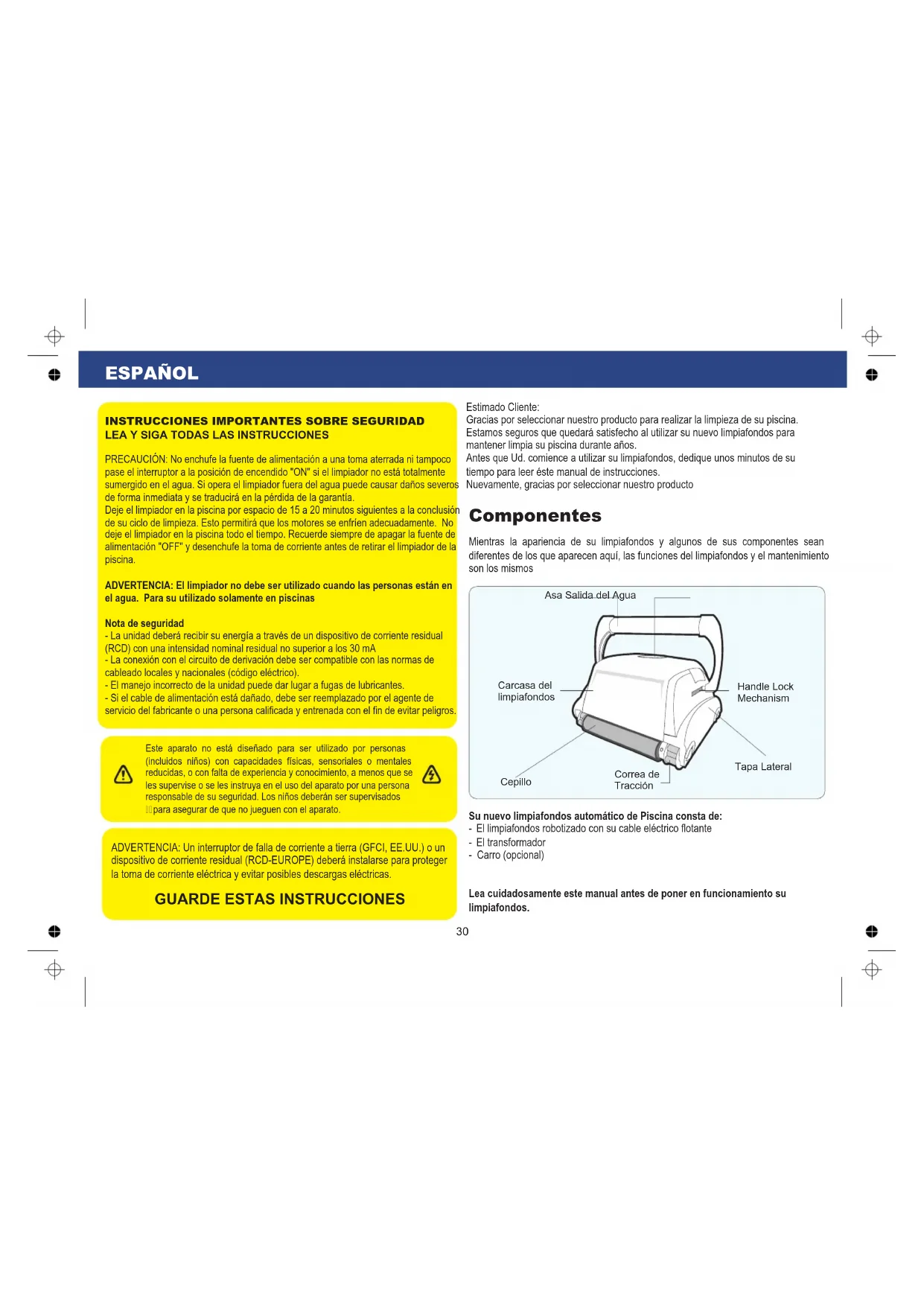 Antes que Ud. comience a utiliser su limpiafondos, dedique unsos instantos de su tiempo para leer este manual de instructiones.